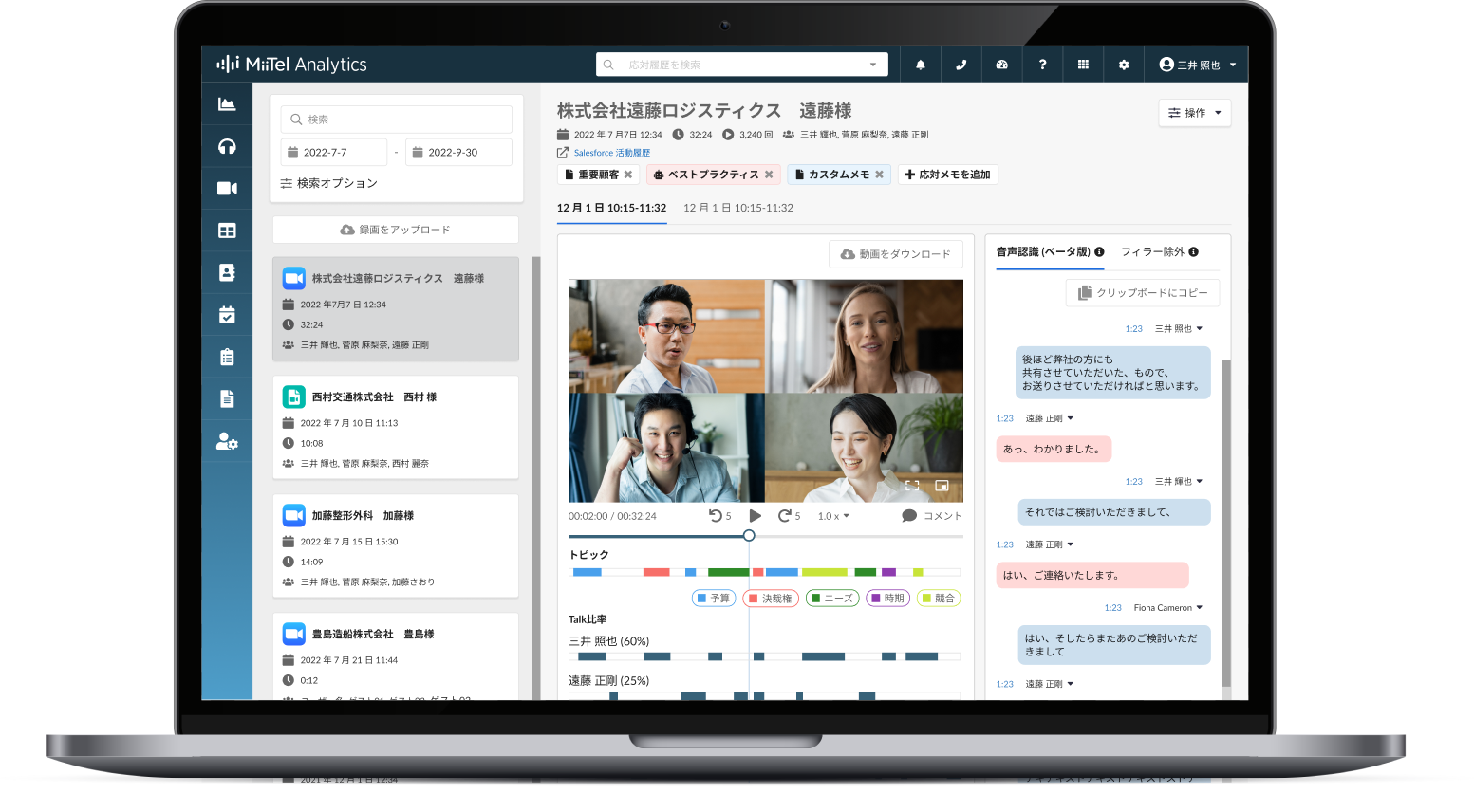 株式会社RevComm(レブコム、本社:東京都渋谷区、代表取締役:會田武史)は新サービス「MiiTel for Zoom」の提供を開始しました。リモートワークの普及により定着したZoomでの商談をAIが解析、オフラインを超えるオンラインコミュニケーションを実現し、企業活動の生産性向上を実現します。