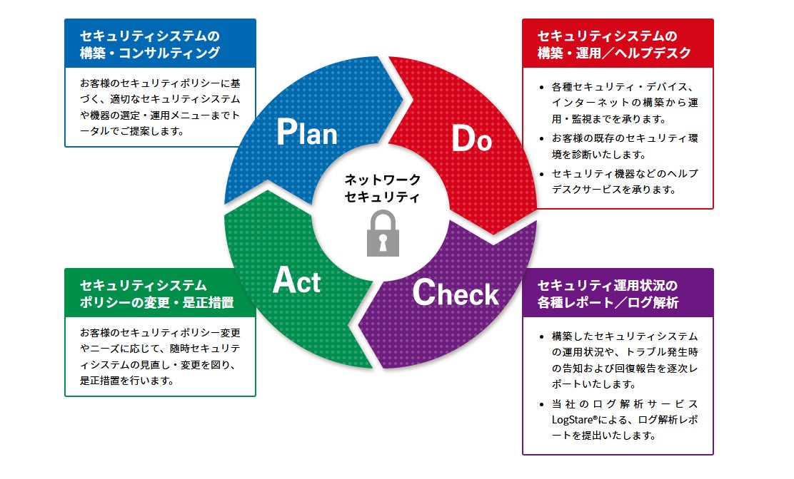 2001年設立。創業以来ネットワークセキュリティに特化して、コンサルティング、設計、構築、運用、監視などのサービスからログ分析システムやネットワーク運用監視システムの開発、提要、保守に至るまで、企業や組織の情報システムの運用をサポート。24時間365日セキュリティシステムを監視するマネージメントサービス「NetStare」ブランドを中心に、累計4500社以上にサービスを導入。システムセキュリティを確保し、事業運営を安心して継続させるために、「安全」で「役立つ」サービスを提供します。
