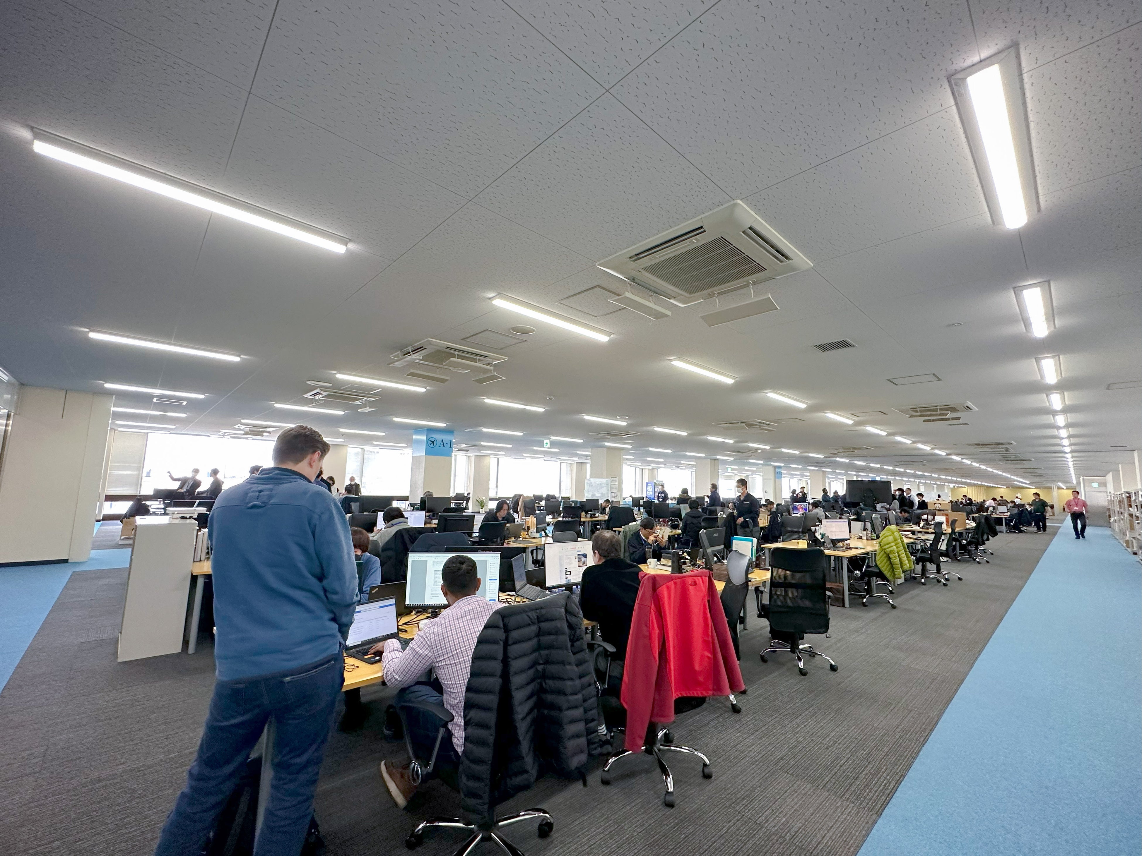 当社には、日本に留まらず、アメリカ・イギリス・フランス・ドイツ・カナダ・ブラジル・インド・トルコ・韓国など、世界各国からスペシャリストが集まり働いています。さまざま生活習慣・企業文化のバックグラウンドを持つメンバーが、互いを知り、尊重しあえるよう工夫をしました。カフェスペースを設け、その隣には、通訳メンバーの席があり会話を促進します。フロアを横断する通路にはThanksカードが置かれています。また礼拝スペースを設置しました。