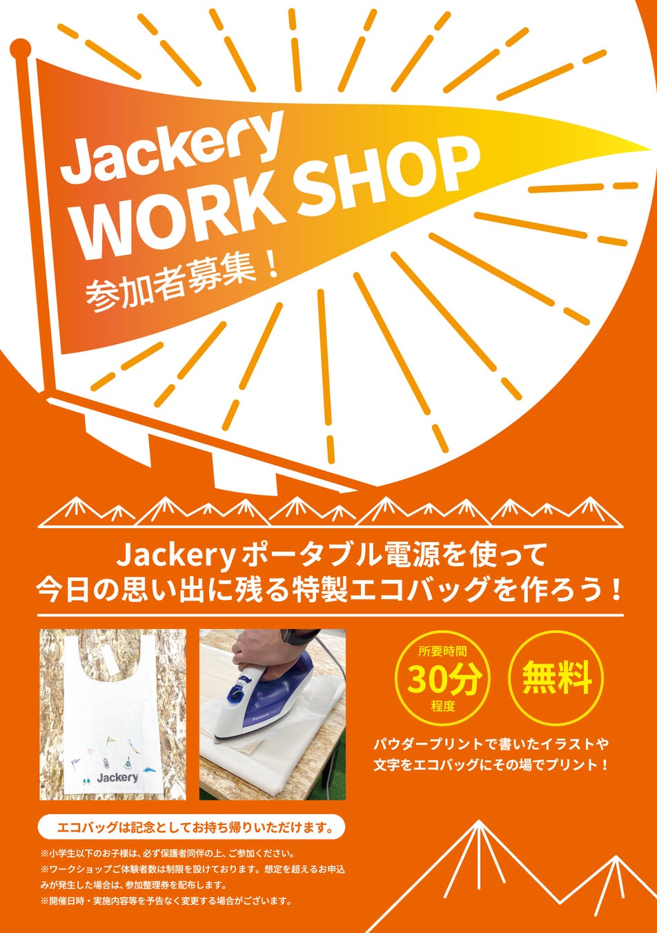 Jackery ポータブル電源を使った無料のワークショップを実施します。エコバッグにオリジナルのイラストをプリント!