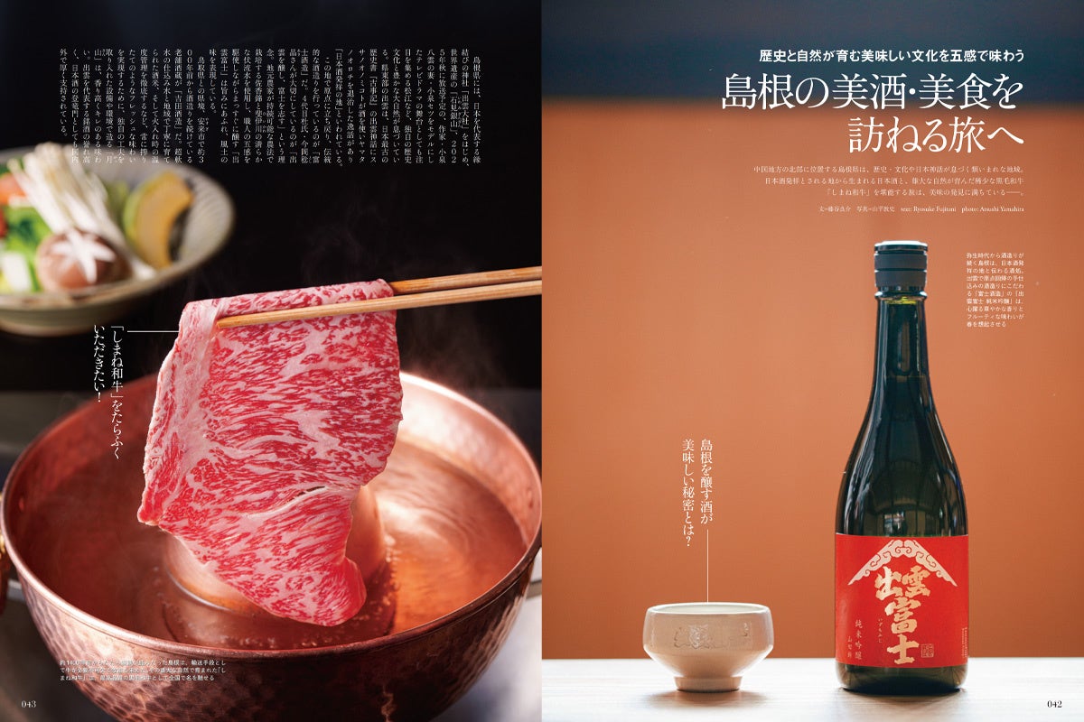 島根は「出雲大社」や「石見銀山」など、独自の歴史文化と豊かな自然が息づく地域。‟日本酒発祥の地”といわれ、酒処としても知られています。また、島根の雄大な自然が育む「しまね和牛」も絶品! 今回はそんな島根の美味を堪能するべく、銘酒「月山」、「出雲富士」を醸す酒蔵やしまね和牛をたらふくいただくしゃぶしゃぶの名店、そして名宿もご紹介します。関西から足を延ばして、島根の美酒・美食に酔いしれる旅をしてみませんか?