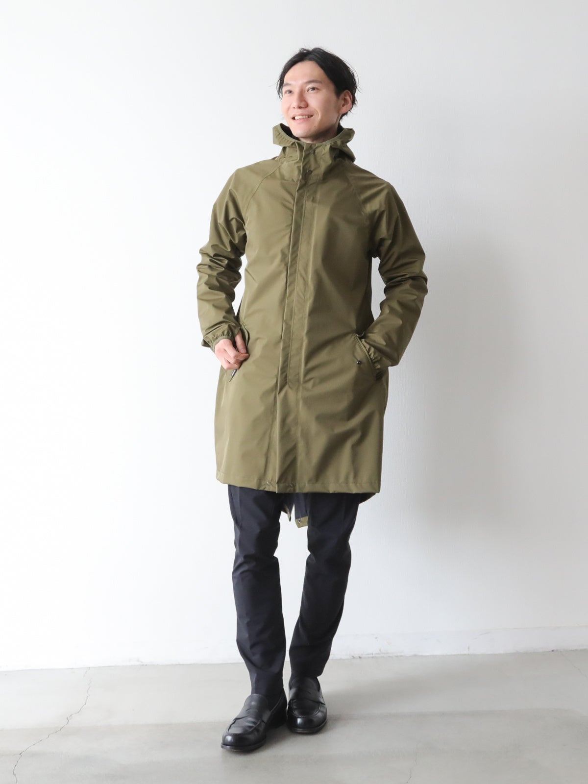 上品なモッズコートに完全防水が備わった晴雨兼用コート。