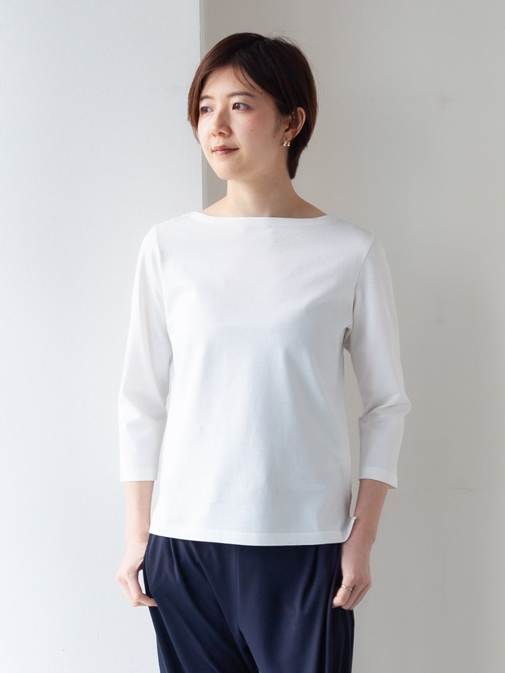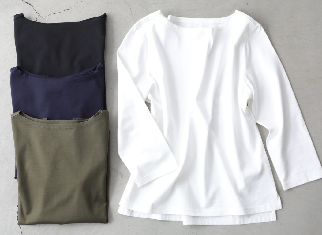 3位:上質コットン100%のドレスTシャツ/ボートネック七分袖