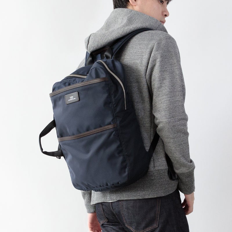 レザーのバックパックも素敵ですが、イタリア製の超高密度ナイロンと上質レザーが織りなす高級感、便利な機能性、そして耐久性の高さは、巷のナイロン系バックパックとは一線を画す仕上がり。
