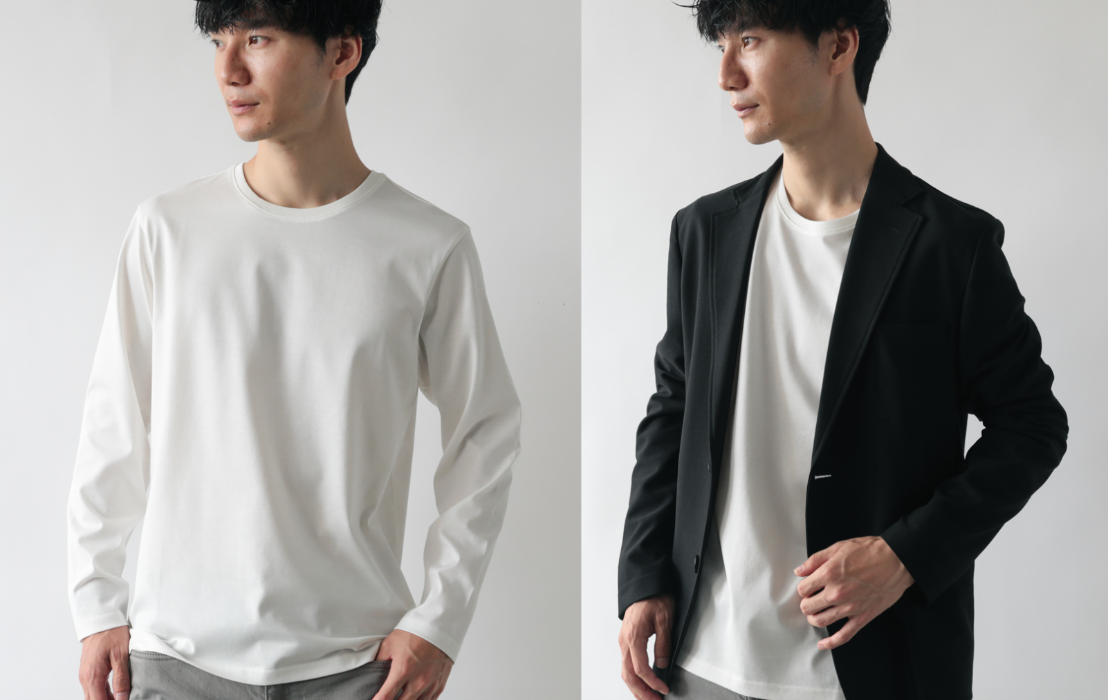 ジャケットスタイルにも非常にマッチする、どこにでも着ていける1枚です。