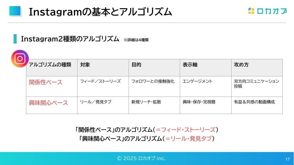 Instagramの投稿がどのような仕組みでユーザーに表示されるのかについて、基本的な考え方が整理されました。Instagramには主に2つのアルゴリズムがあり、フィードやストーリーズではフォロワーとの関係性を重視した表示が行われる一方、リールや発見タブでは興味関心に基づいた投稿が広く表示される仕組みになっています。