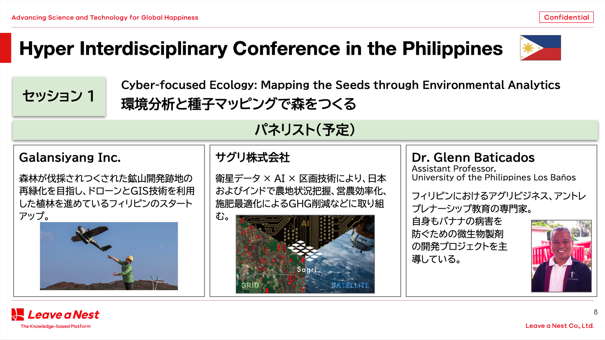 サグリ株式会社(本社:兵庫県丹波市、代表取締役:坪井 俊輔)は、衛星データ(Satellite)×機械学習(AI)×区画技術(GRID)を掛け合わせ、農業や環境における課題解決を目指す岐阜大学発ベンチャー企業です。当社代表の坪井は11月5日(土)にフィリピンのパサイ市で開催されたHYPER Interdisciplinary Conference in the フィリピン 2022に登壇し、農林業分野での連携を開始。