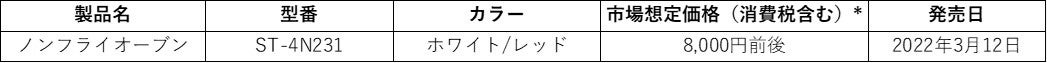 シロカ株式会社(東京都・千代田区)は、油で揚げないヘルシーな揚げ物料理が楽しめるノンフライオーブン(ST-4N231)を2022年3月12日に発売します。*1