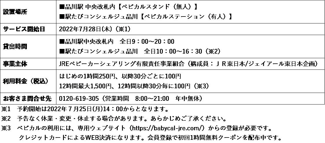 ◆東日本旅客鉄道株式会社、株式会社JR東日本びゅうツーリズム&セールス、株式会社ジェイアール東日本企画は、子育て世代が子供と気軽に外出できる社会の実現を目的として、外出先でも便利に利用できる予約可能なベビーカーレンタルサービス「ベビカル」を展開しています。