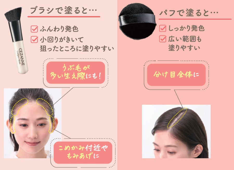 「セザンヌ ヘアメイクパウダー」使用 仕上がりの違い