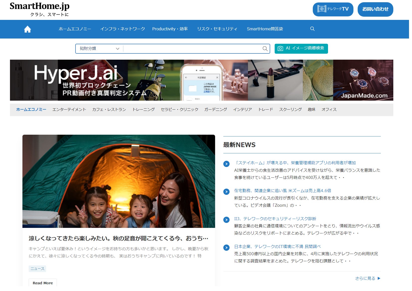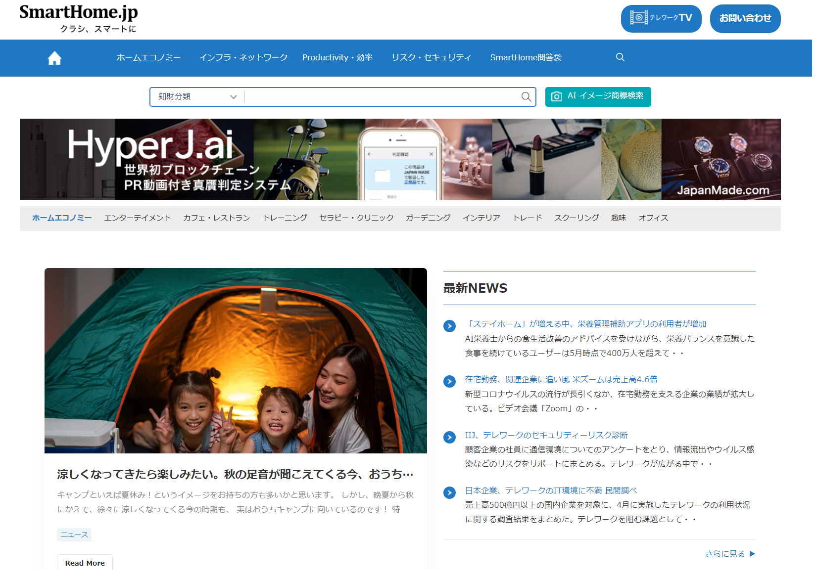 JapanMade社が運営する、情報ポータル「SmartHome.jp」では、「クラシ、スマートに」のキャッチコピーのもと、「ホームエコノミー」を支える10の諸分野を中心に、最新ニュースご紹介や独自コンテンツなどによって、ホームエコノミー時代のスマートな生活と仕事の情報をお届けしています。