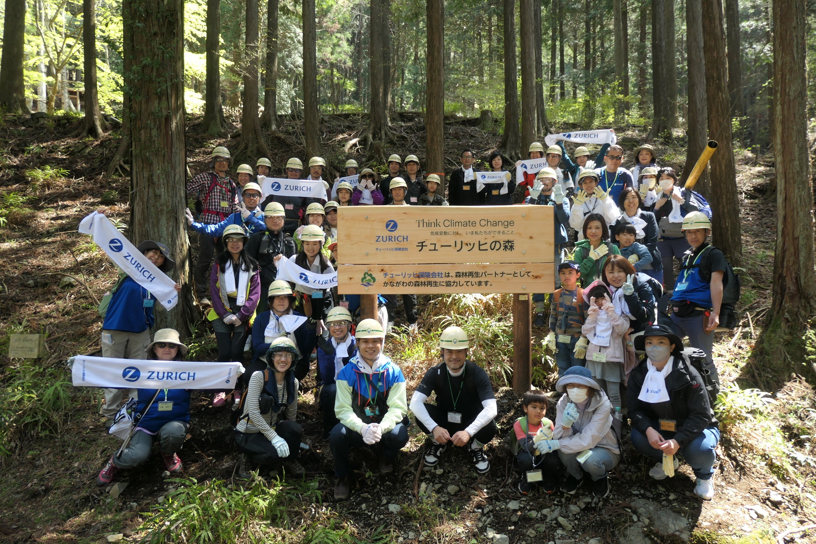 当社は、2023年11月より「神奈川県 チューリッヒの森」プロジェクトを始動しました。このプロジェクトでは、神奈川県が実施する森林再生の取組みに当社がパートナーとして参加協力し、ともに未来につなぐ森づくりを進めています。具体的には当社が5年間、県に寄付を行い、それを財源として県が相模川や酒匂川流域の水源地域の森林の整備活動を実施します。水源地域の森林を健康で活力ある状態に保ち、次世代に引き継いでいくため、当社の社員も間伐やつる切り、枝打ち、下草刈り、自然観察などの活動を実施し、県と一体となって森林を守っていきます。