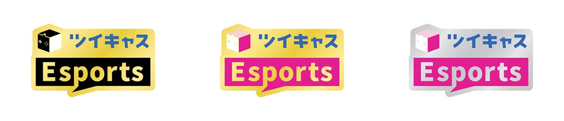 画像左から、総合優勝用ツイキャスEsportsピンバッジ、総合準優勝・総合3位用ツイキャスEsportsピンバッジ、決勝大会参加者用ピンバッジ