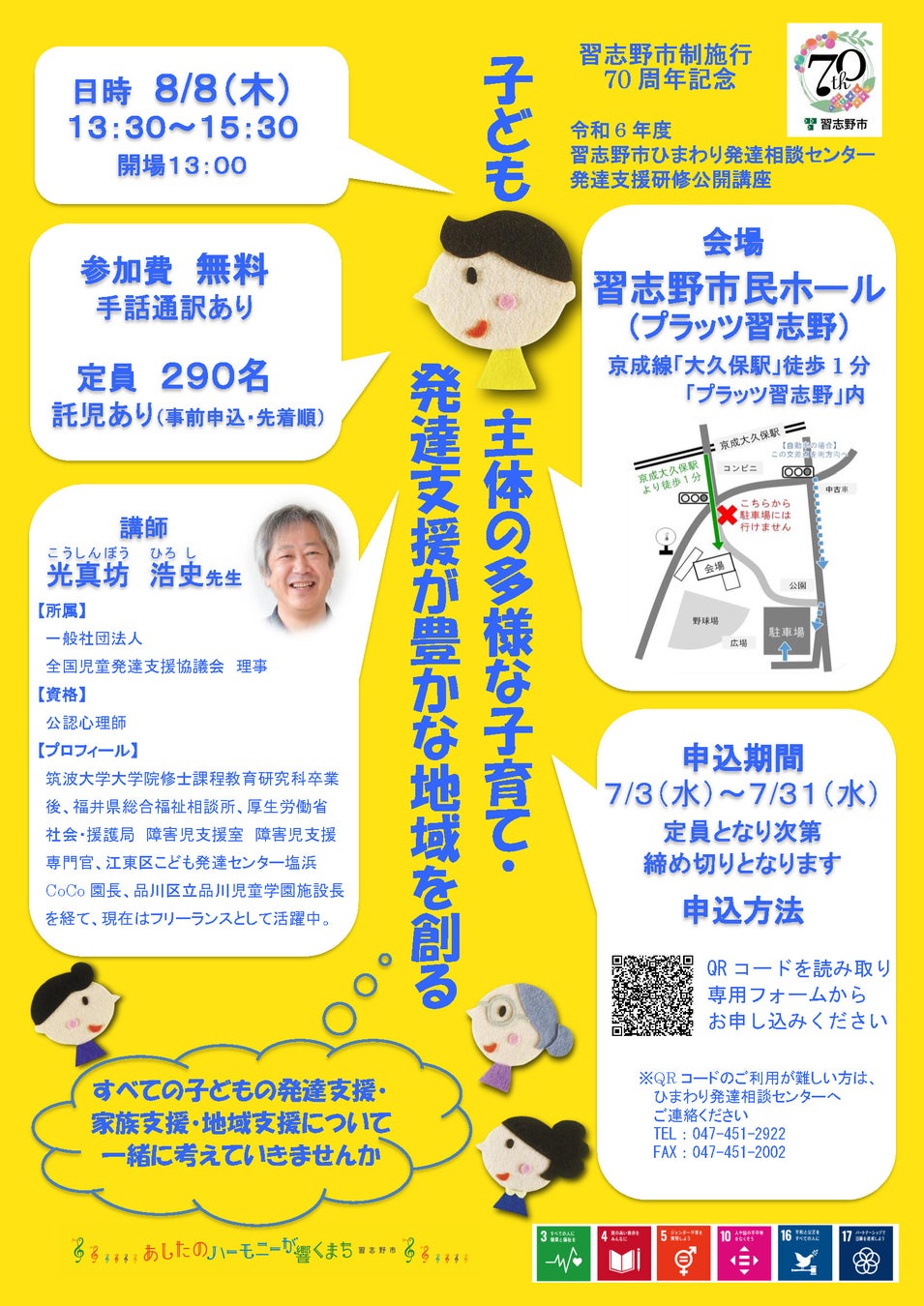【千葉県習志野市】習志野市制施行70周年記念 発達支援研修公開講座を開催します!
