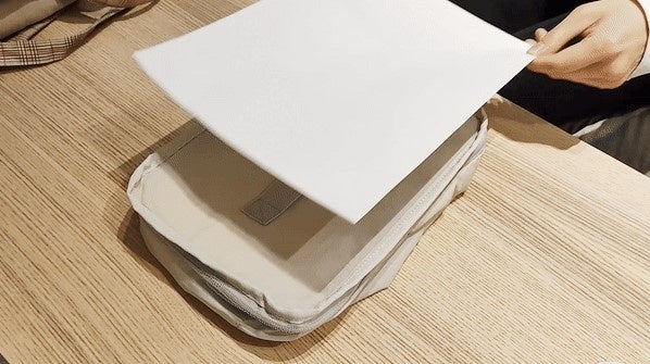 圧縮したら、ひっくり返して収納部分に入れて、ジッパーを閉じてすっきり!