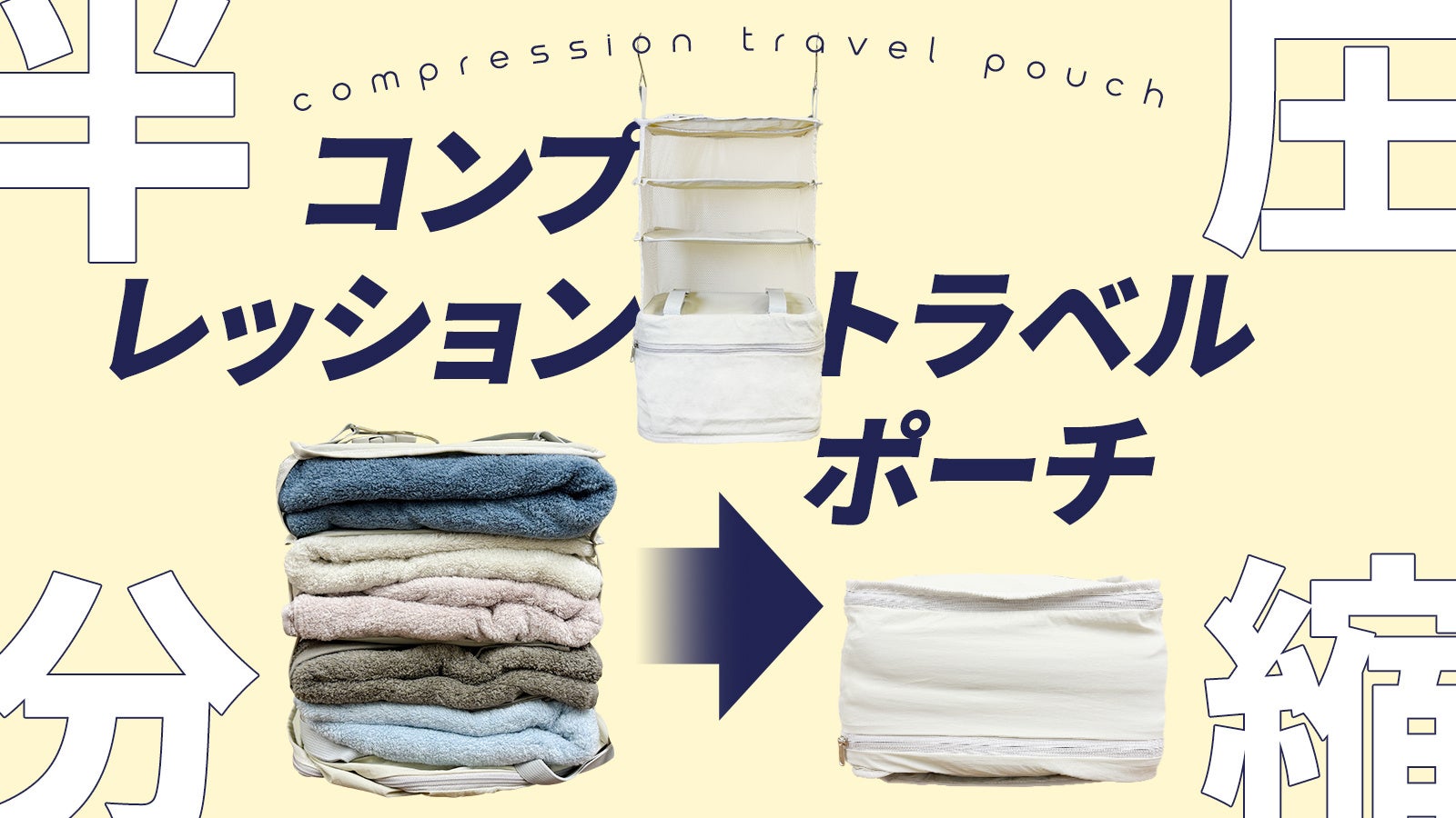 旅行やお出かけにA4サイズのトラベルポーチ!コンプレッションで衣類を簡単圧縮!吊り下げもできて便利すぎ!