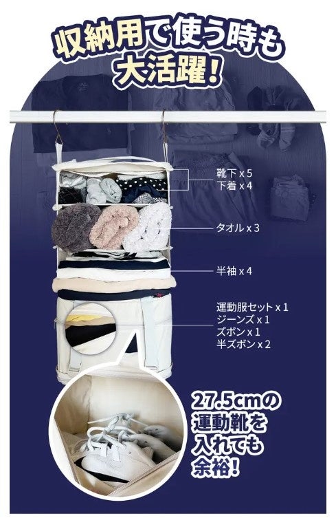 旅行以外でも普段クローゼットや部屋などに吊るして利用できて大活躍!