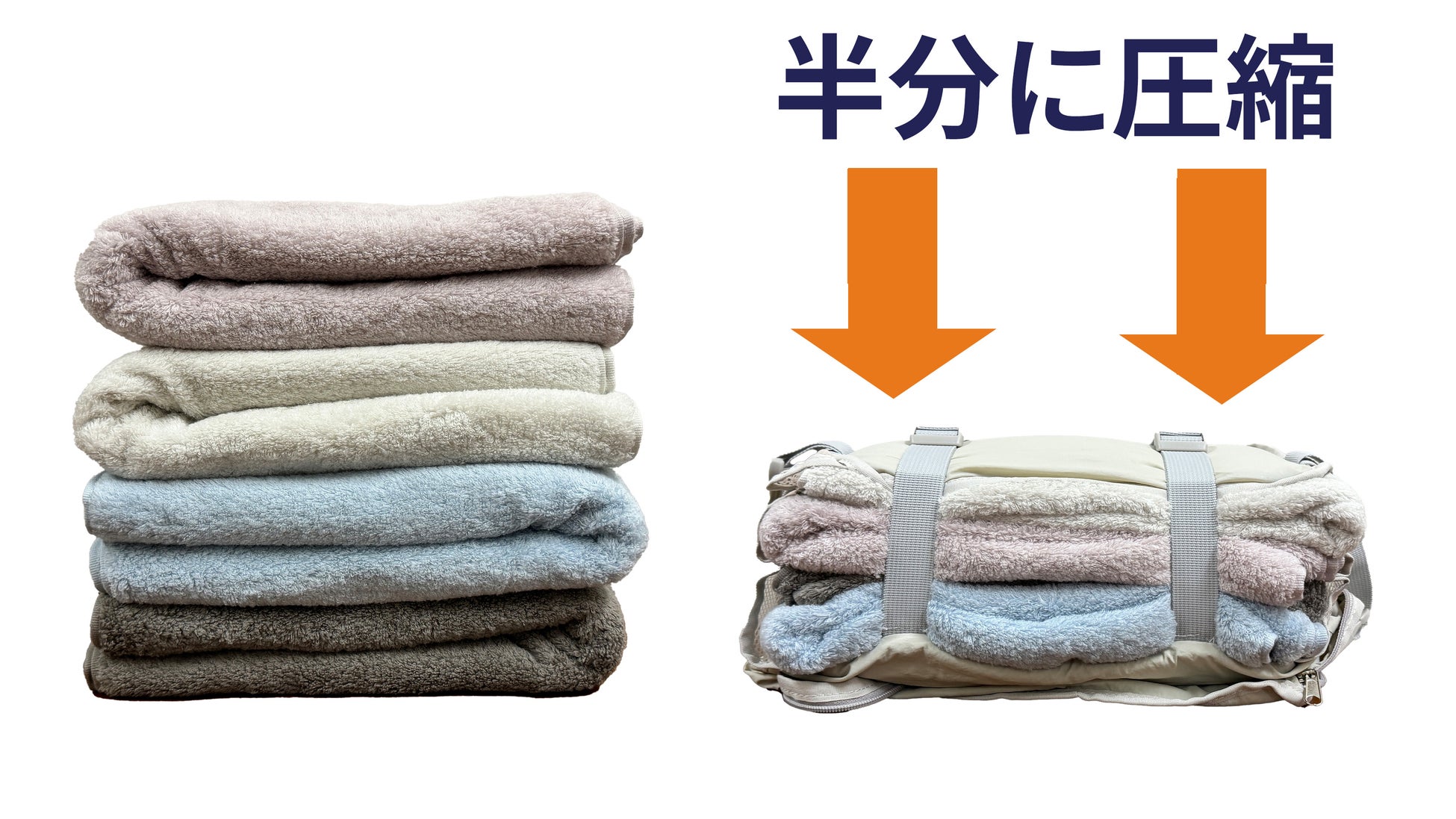 アウトドアなどに使われているコンプレッション方式を採用し、