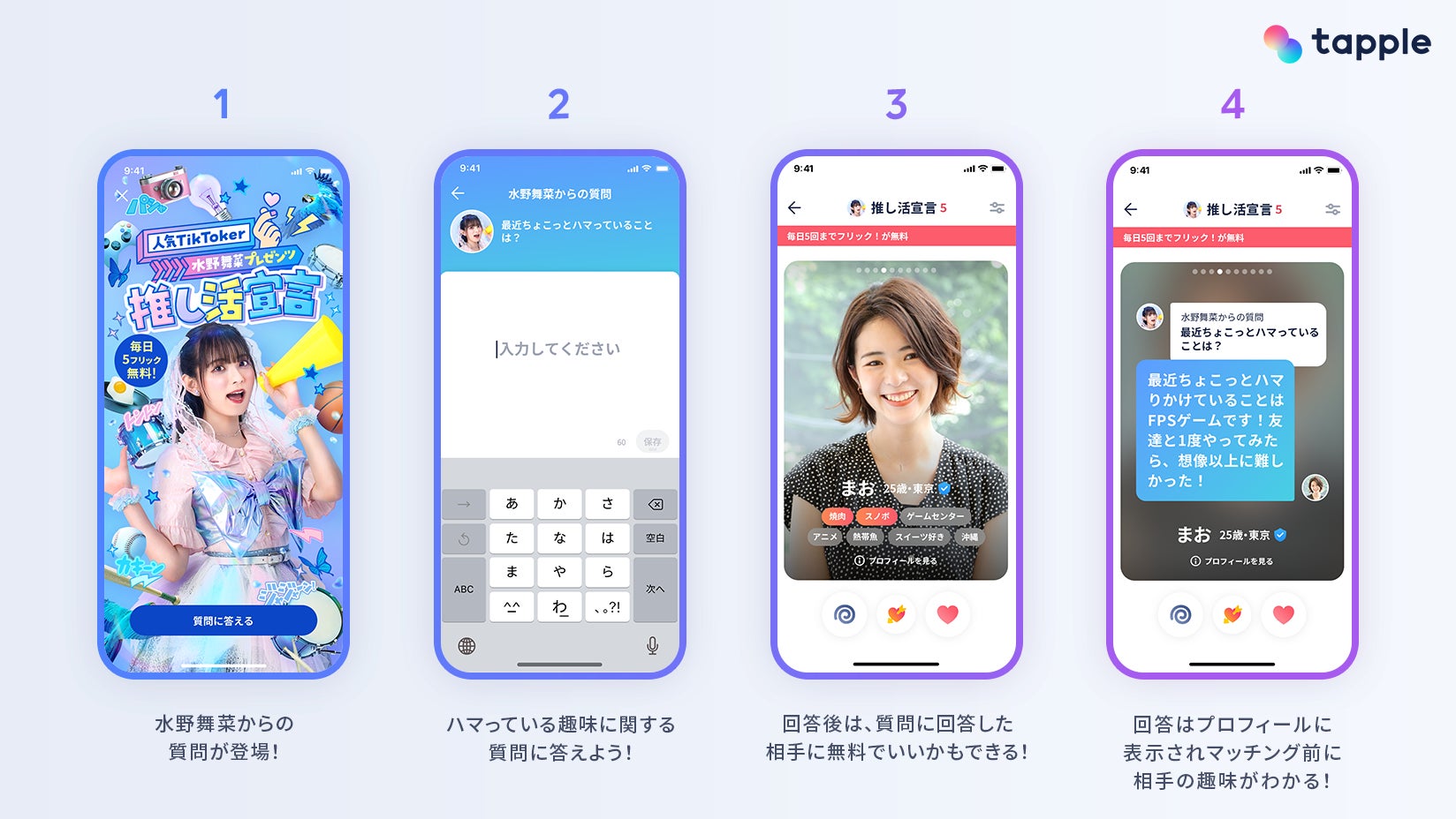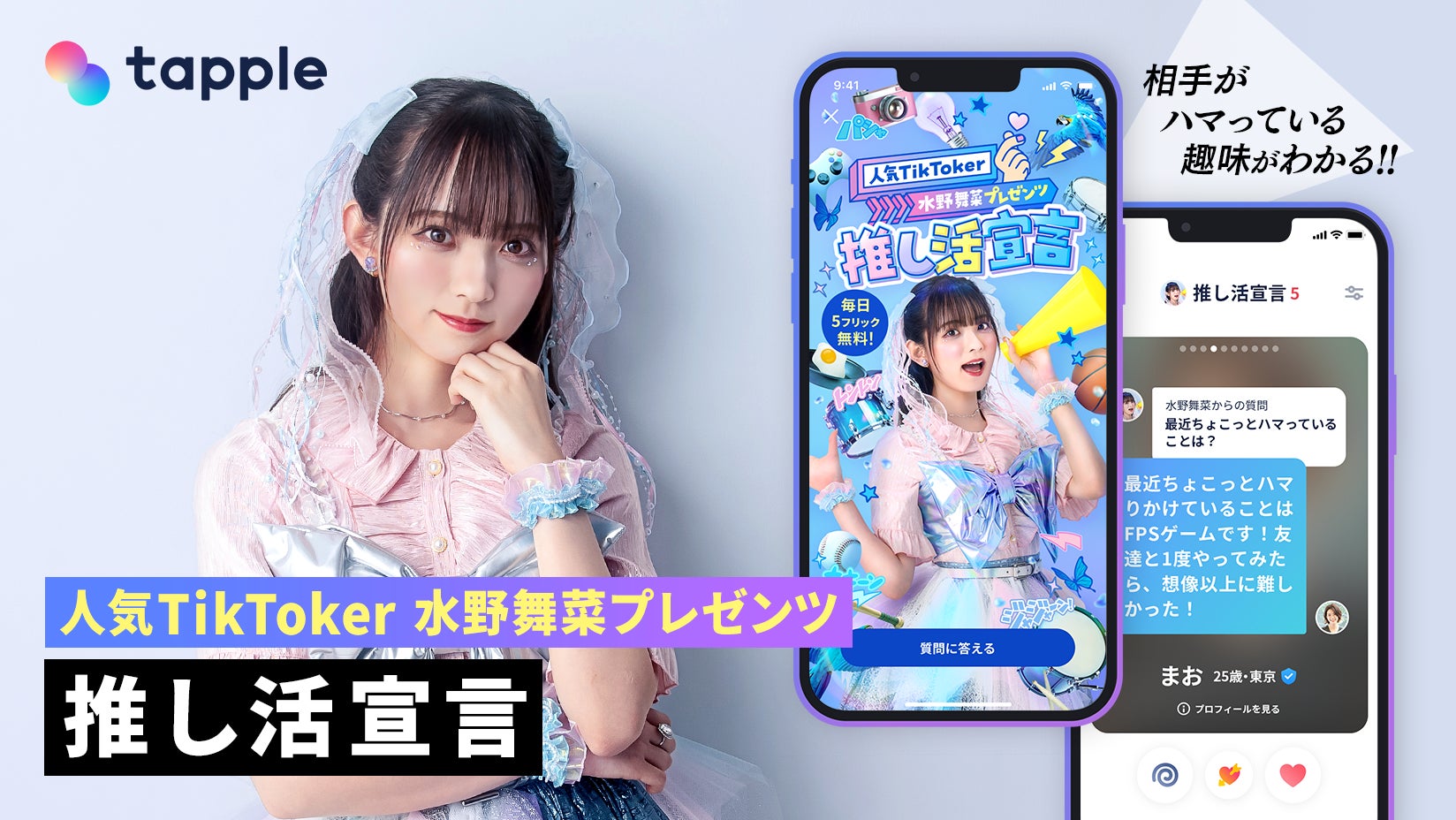 マッチングアプリ「タップル」、人気TikTokクリエイター水野舞菜とのコラボコンテンツ『推し活宣言』を期間限定で提供開始