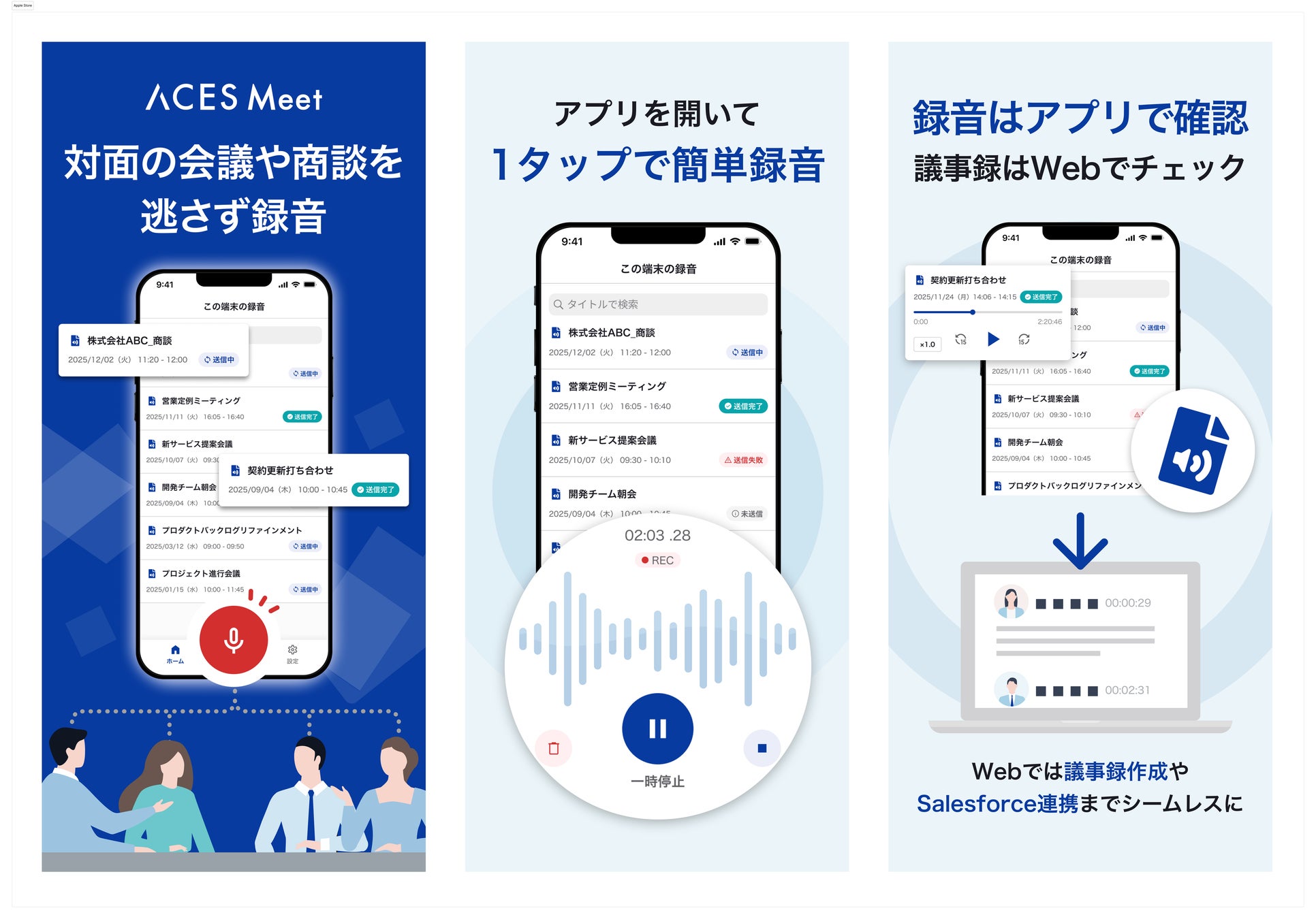 株式会社ACES(東京都文京区、代表取締役 田村 浩一郎、以下「ACES」)は、高精度AI議事録ツール「ACES Meet」において、スマートフォンアプリ iOS版を正式にリリースいたしました(Android版は順次対応予定)。これにより、従来のオンライン会議に加えて、対面での会議や商談でもワンタップで録音・議事録作成が可能となります。