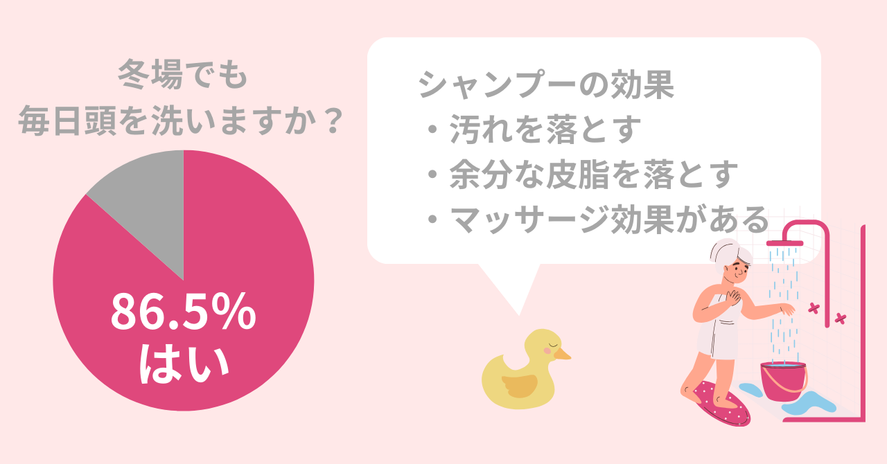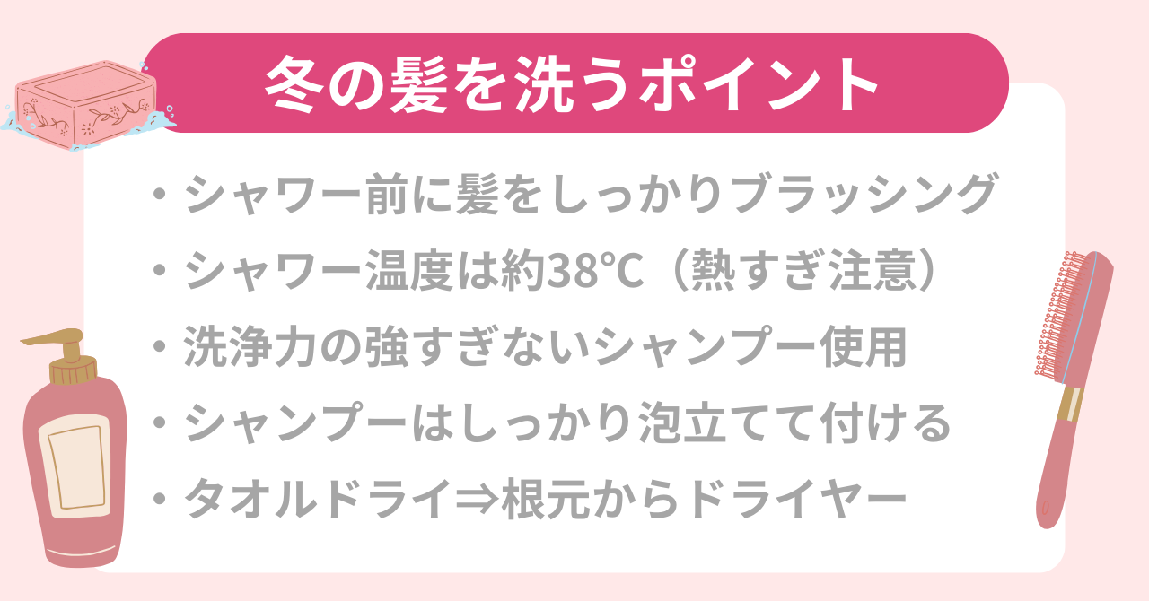 一方で、乾燥しやすい冬場にシャンプーをし、皮脂を取り過ぎてしまうことで、頭皮に痒みが出てしまうというデメリットもあります。