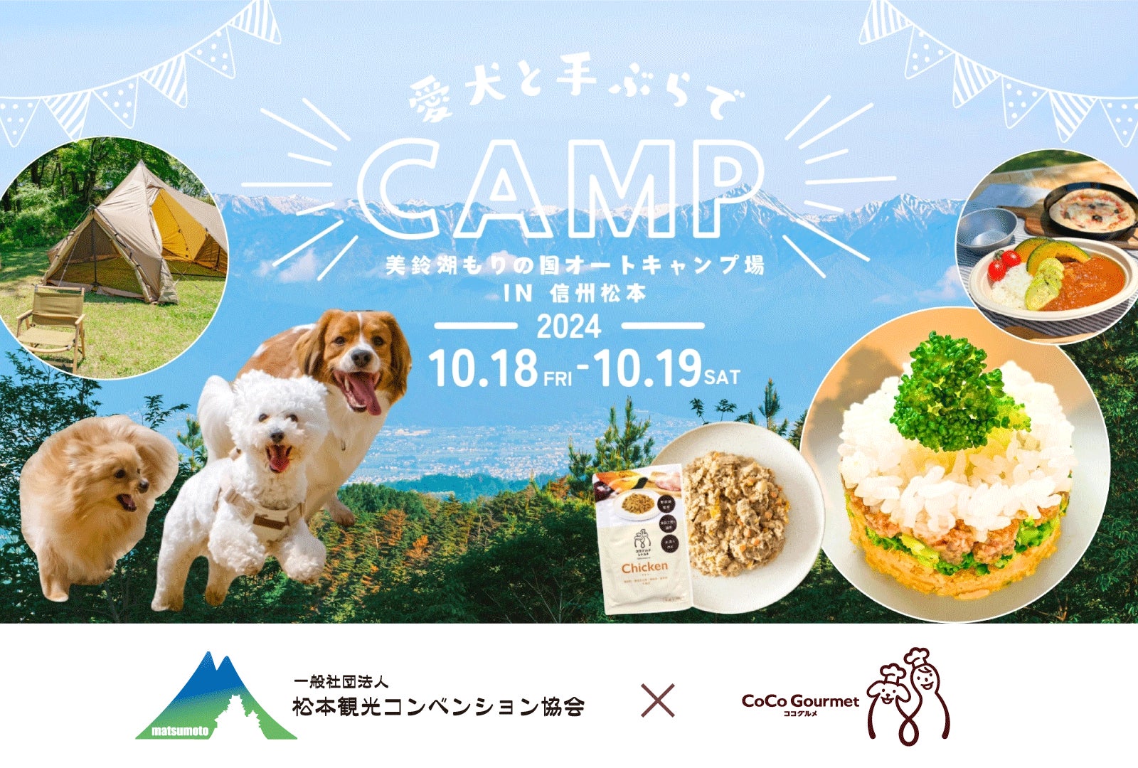 愛犬愛猫の手作りペットフードを開発・販売するスタートアップ、株式会社バイオフィリア(本社:東京都新宿区、代表:岩橋洸太、以下:当社)は、松本観光コンベンション協会と協業し食×ペットツーリズムを推進します。10月18日(金)〜19日(土)開催の「愛犬と手ぶらでキャンプin信州松本」では、会員愛犬数25万頭(※1)を突破したフレッシュペットフード(※2)「CoCo Gourmet(以下:ココグルメ)」のレトルトタイプ「ココグルメ・レトルト」を使った押し寿司ケーキ風の愛犬ごはん作りの他、クイズ大会など交流企画も満載で、キャンプが初めての方、ワンちゃんも安心してご参加いただけます。9月20日まで申し込み受付中です。