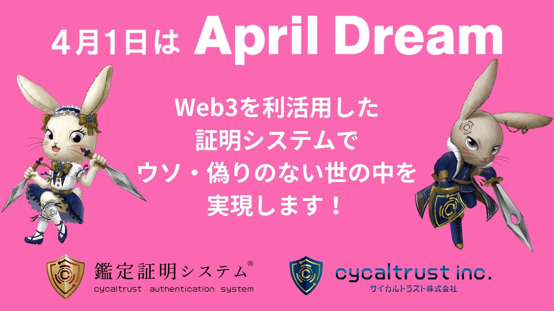 当社は、4月1日を夢を発信する日にしようとするApril Dreamに賛同しています。このプレスリリースはサイカルトラスト株式会社の夢です。