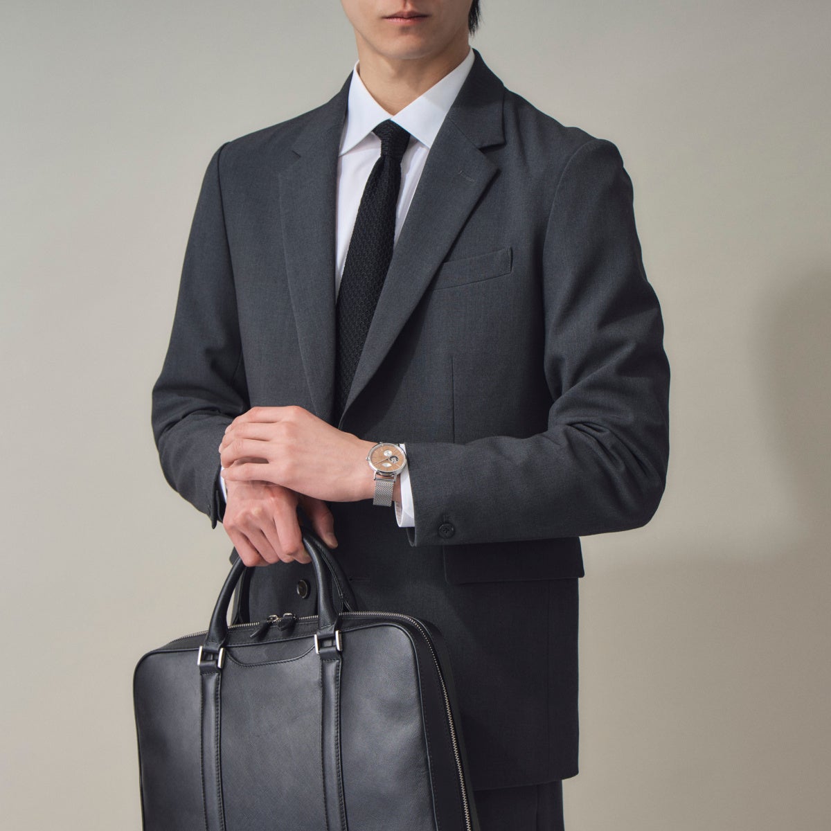 天然桜を用いた「縫える木」を、オープンハートを備える「CAP-38」と、クラシックなスモールセコンドの「CAS-36」に採用しました。いずれも日本製機械式ムーブメントを搭載し、機械式ムーブメントの鼓動と、天然木の有機的な質感が静かに響き合います。