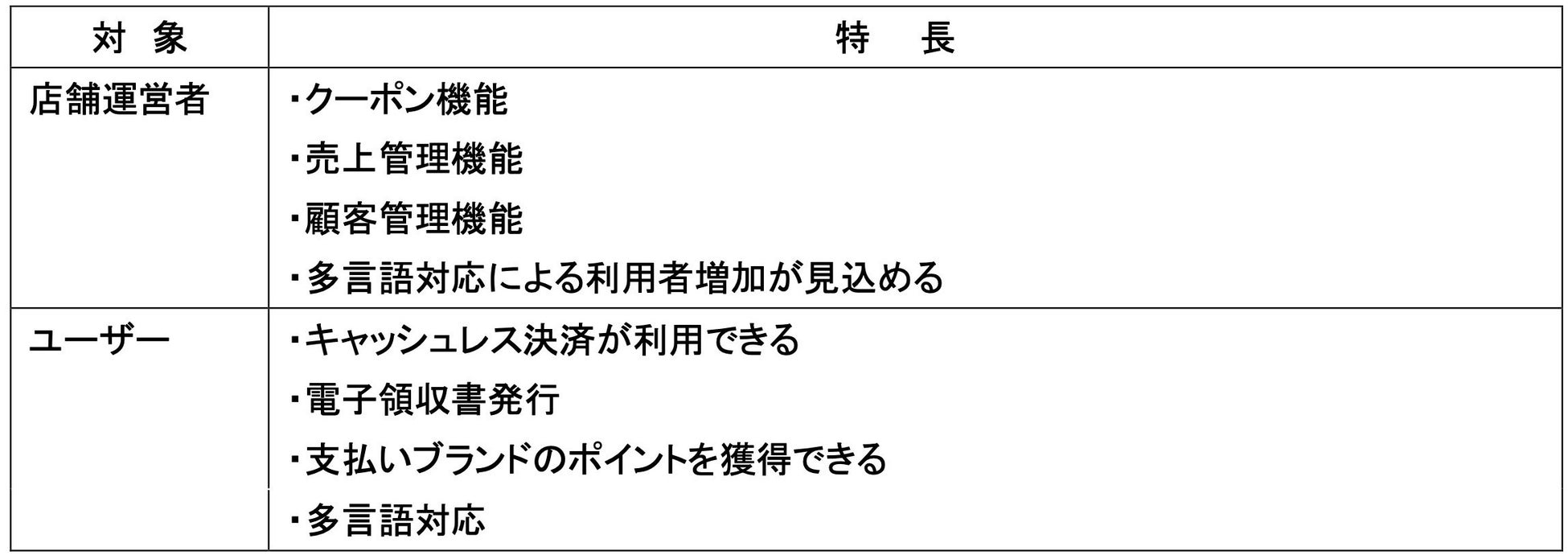 本アプリによるサービスを新たに導入いただくと、店舗運営者はクーポン機能や売上管理機能、顧客管理機能をお使いいただけます。また、コインランドリーの利用者には、スマートフォンによる多言語での機器・コース選択や、各種キャッシュレス決済、電子領収書の発行、支払ブランドのポイント還元を提供することが可能となり、店舗側と利用者側の双方に便利なサービスとなっています。