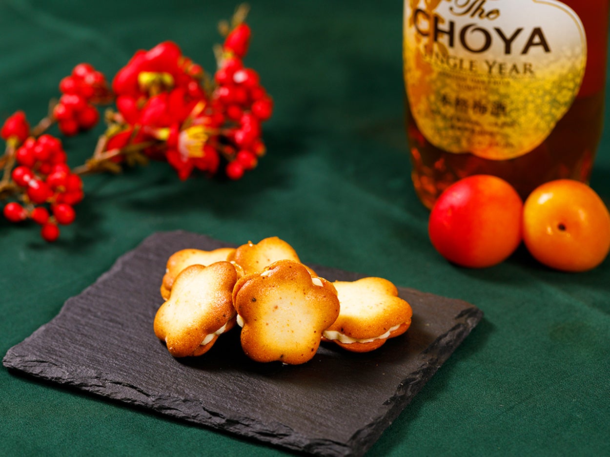 梅の花型シルエットがかわいいラングドシャ。品の良い南高梅ジャムの風味と、まろやかなホワイトチョコレートを絶妙なバランスでサクサク食感の生地に挟み込みました。ティータイムや食後にどなたでもお気軽にお楽しみいただけます。
