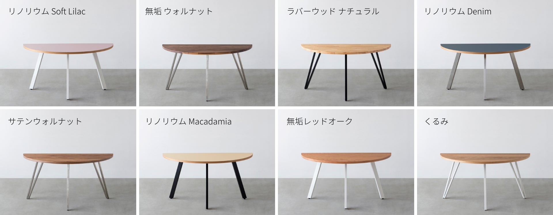 「THE TABLE / 半円」シリーズ https://kanademono.design/collections/half-round-table