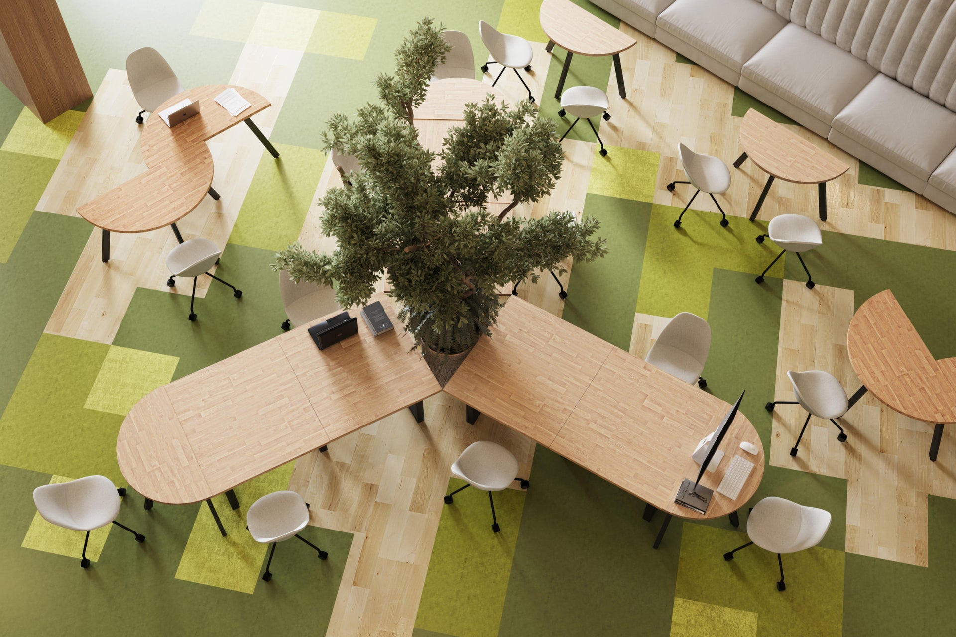 ・オフィスレイアウトをもっと自由に 半円テーブルで柔軟な空間づくり