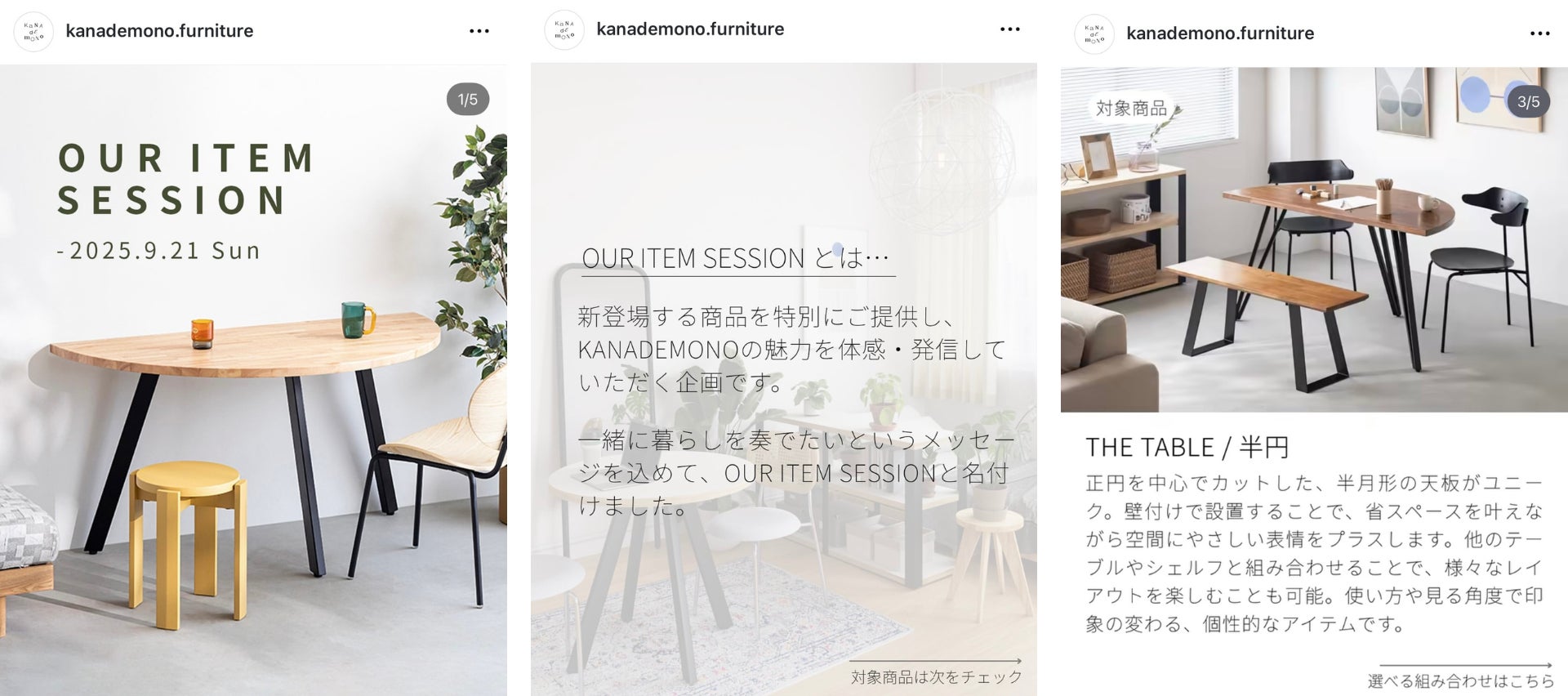 パーソナライズ家具ブランドとして「ちょうど良さ」を大切にしているKANADEMONOでは、暮らしや空間に応じた多様な選択肢を提案してきました。今回発売を開始した半円テーブルは、その柔軟性を象徴するプロダクトとなります。