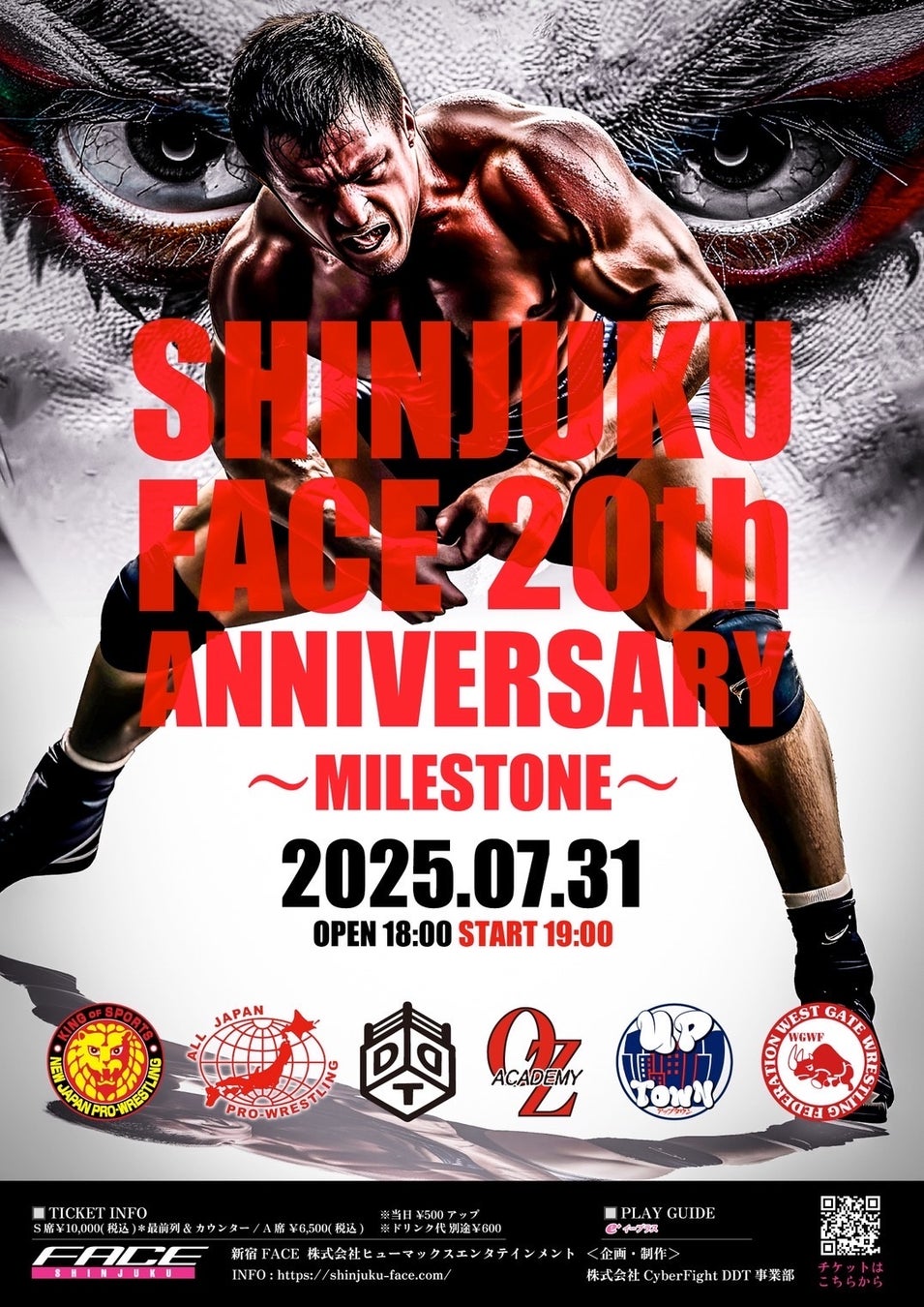 完売御礼!急遽【立見券】販売が決定!!7月31日(木)新宿FACE20周年記念大会「SHINJUKU FACE 20th Anniversary 〜milestone〜」