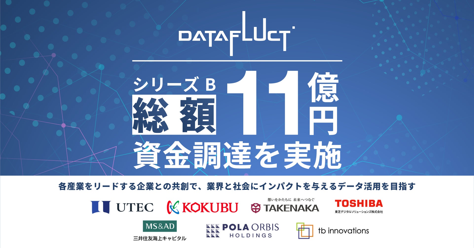 データサイエンスで企業と社会の課題を解決する株式会社DATAFLUCT(本社所在地:東京都渋谷区、代表取締役:久米村 隼人、以下「DATAFLUCT」)は、事業会社を中心とする投資家グループ7社を引受先とした第三者割当増資及びりそな銀行からの融資により、シリーズBラウンドとして総額11億円の資金調達を実施いたしました。本ラウンドにおける評価額(※)は51億円であり、本ラウンドおよび負債性資金を含む累計調達金額は18億円となります。