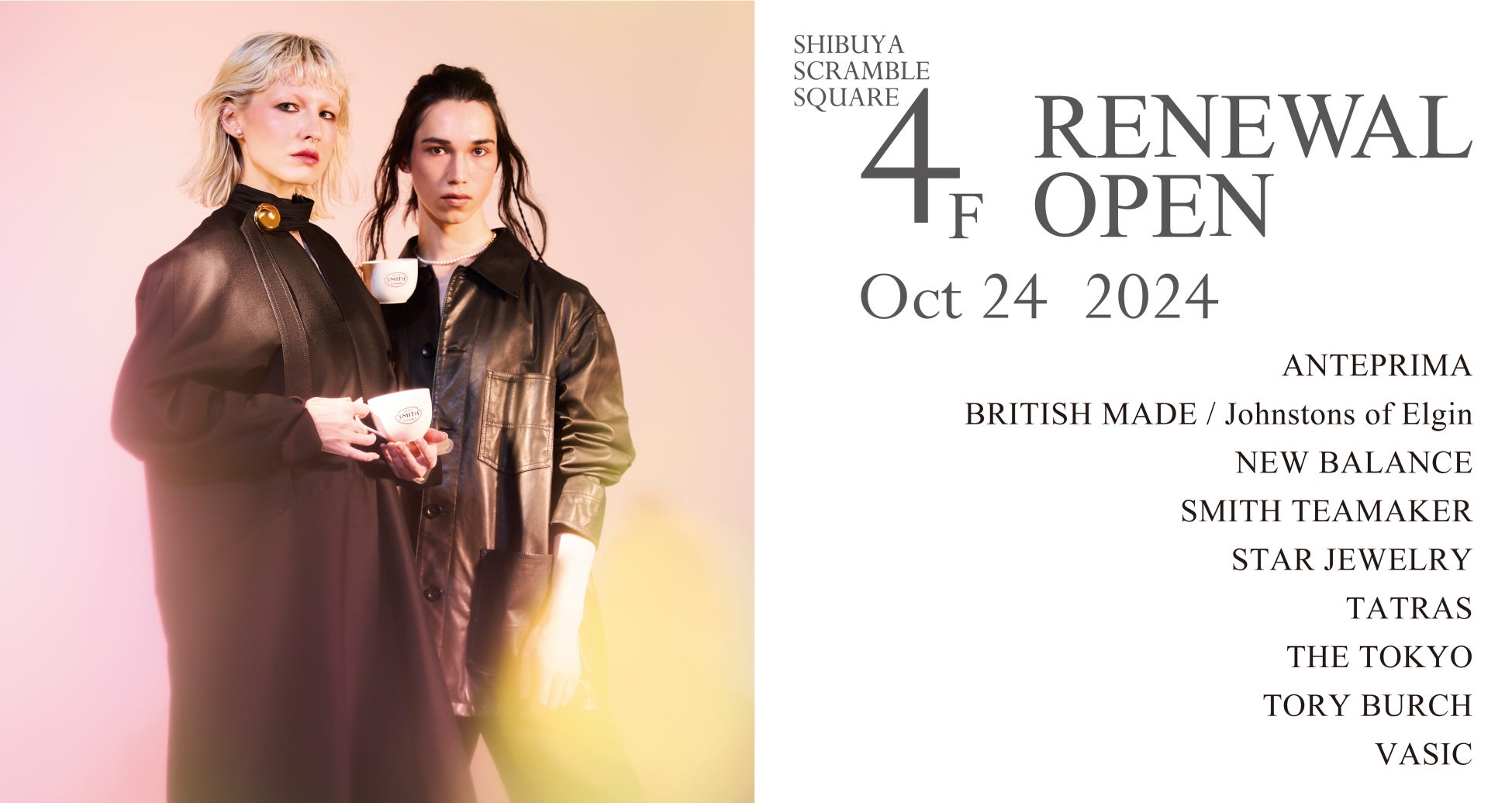 渋谷スクランブルスクエア(以下、本施設)では、2024年10月24日(木)に、4階フロアをリニューアルオープンします。4ショップが新たに加わり、5ショップがリニューアルを実施します。「世界最旬」を掲げる本施設ならではの店舗ラインアップ、店舗体験で新たな出会いと驚きを皆さまに提供してまいります。