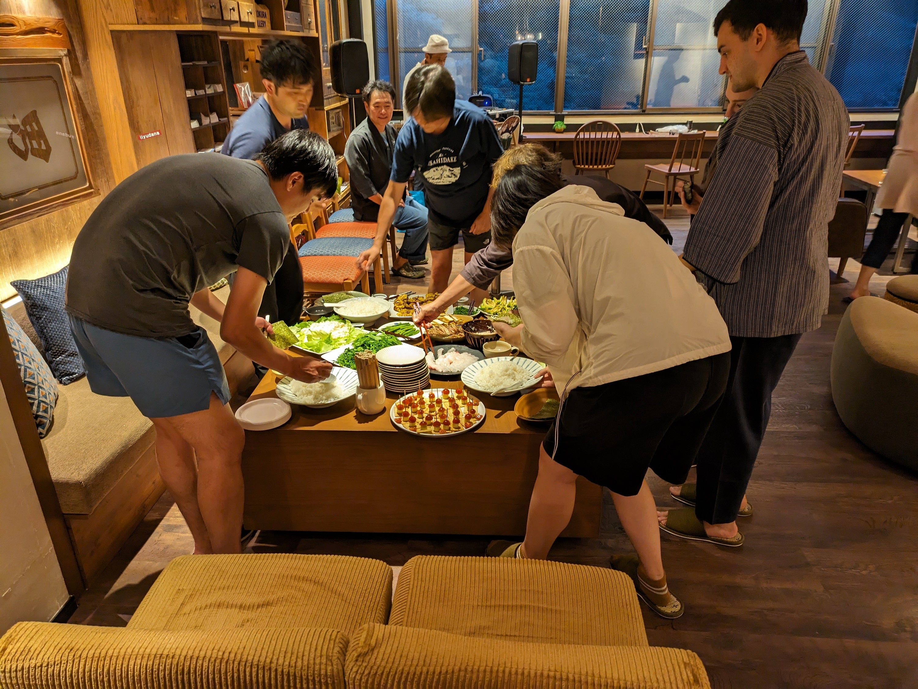 また、台風が直撃し外に出られない日には、館内ステイで楽しんでもらえるよう「手巻き寿司ナイト」を開催しました。海外のお客様はもちろんのこと、日本のお客様も寿司を自分で巻くのは初めて。とご好評いただきました。