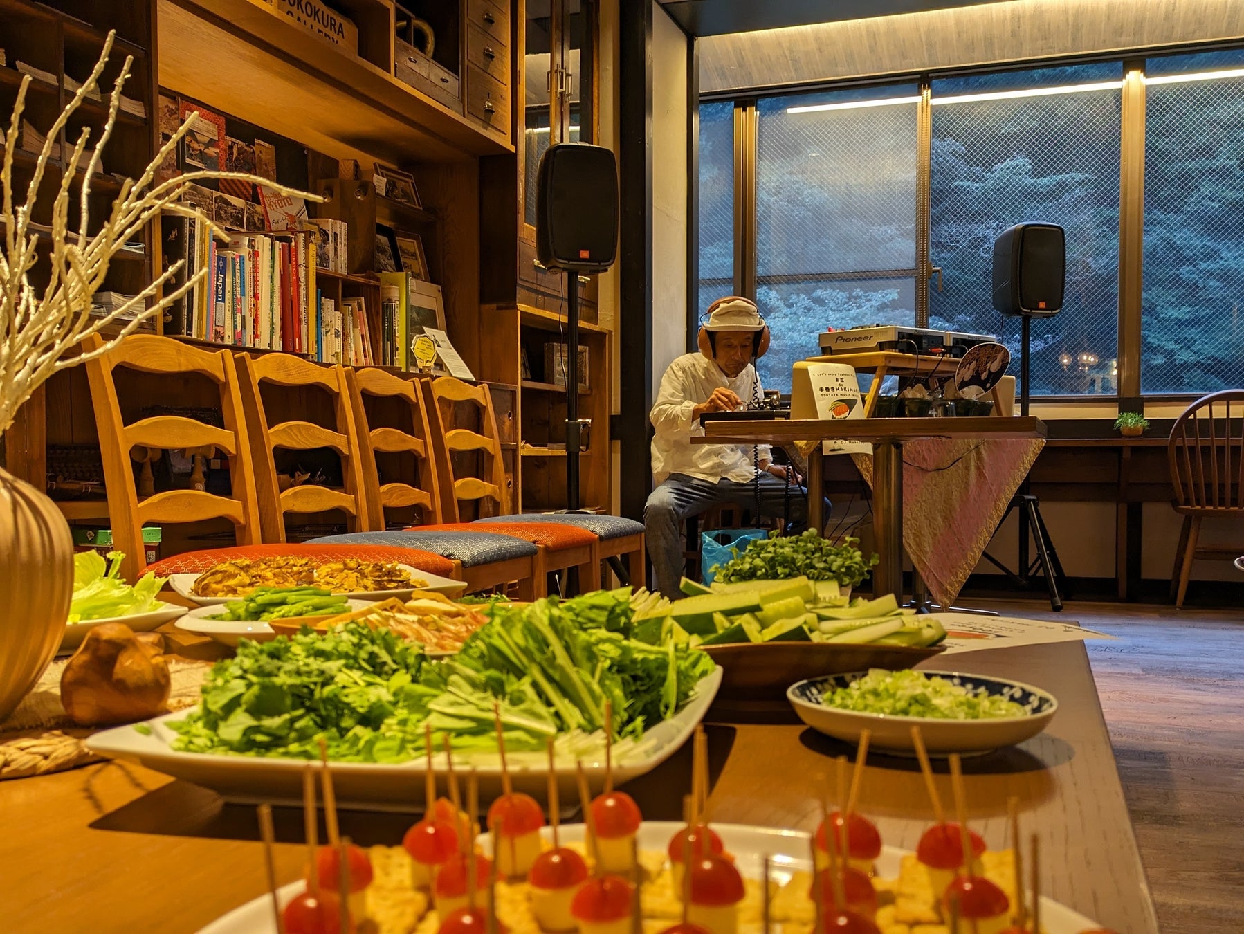 お月見ナイトでは、日本の文化に触れるきっかけとしてちらし寿司とお好み焼きを、イベント参加のお客様にキッチンで調理をしていただきます。十五夜に、お月見をしながら一期一会の出会いを楽しみませんか。