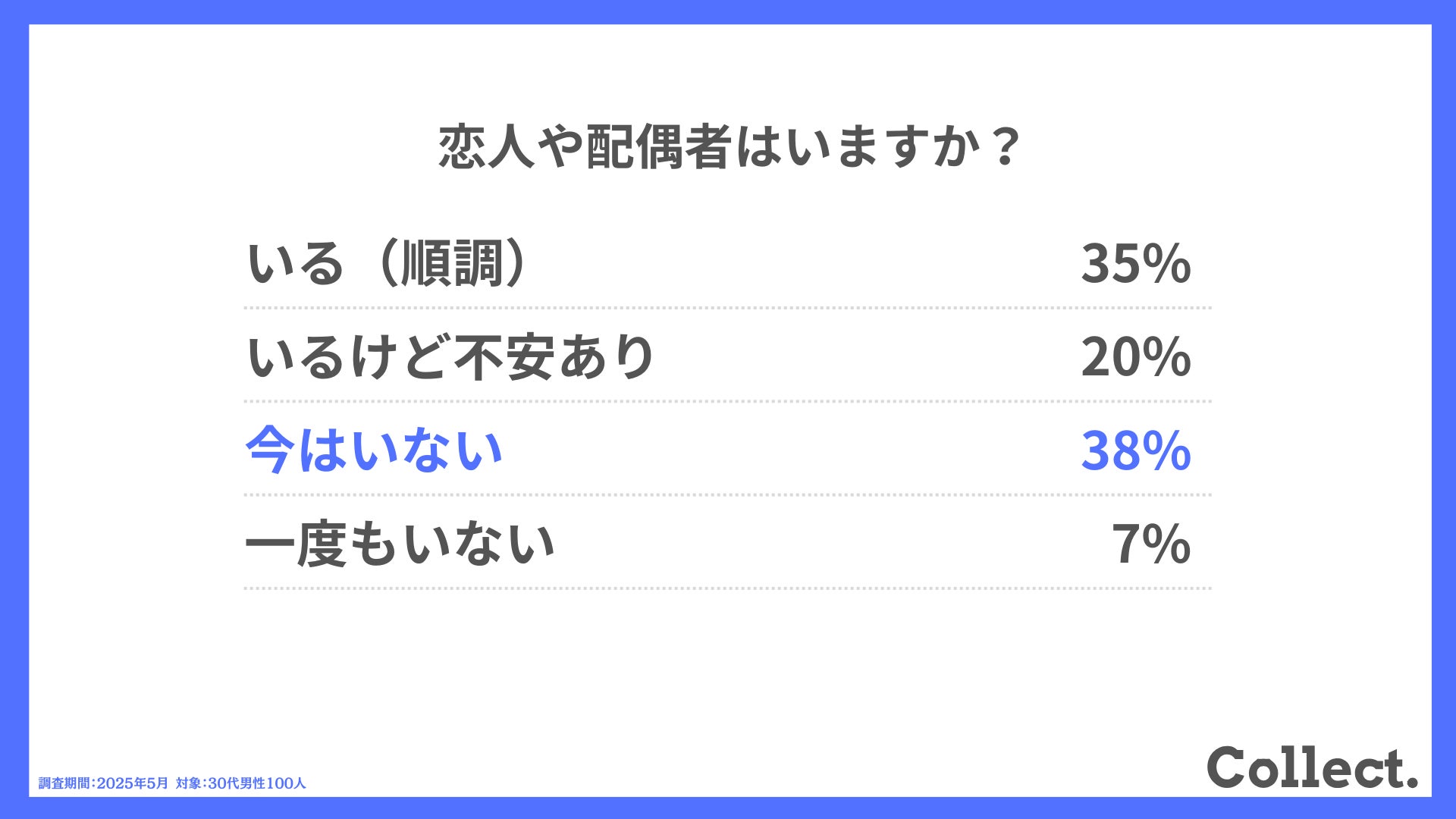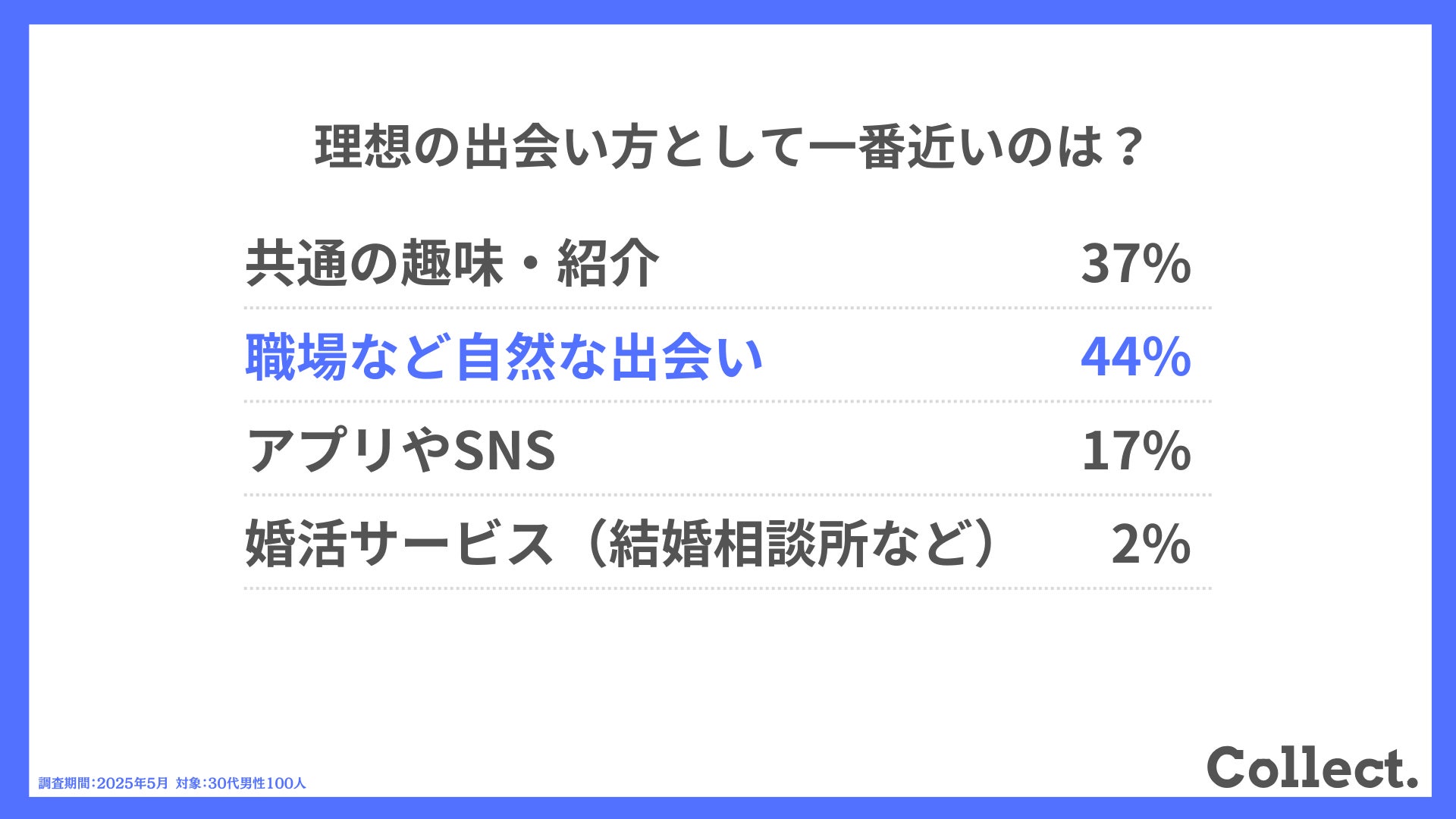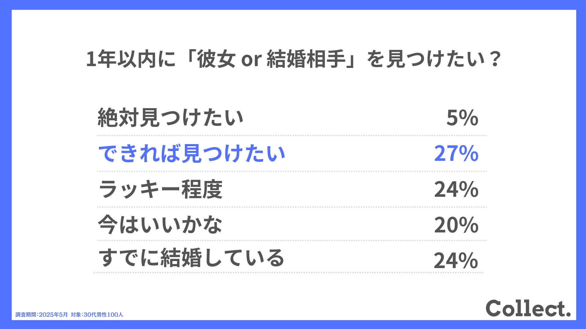 「1年以内に相手を見つけたい」と考える30代は32%。潜在ニーズは高水準【Collect.(コレクト)】