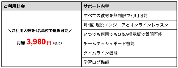 人材育成を開始したいものの、「疑問点を解消できる環境が整備できていない」、「育成・研修コストをかけられない」、「まずは少人数から試験的に利用してみたい」などのお悩みを持つ企業様におすすめです。