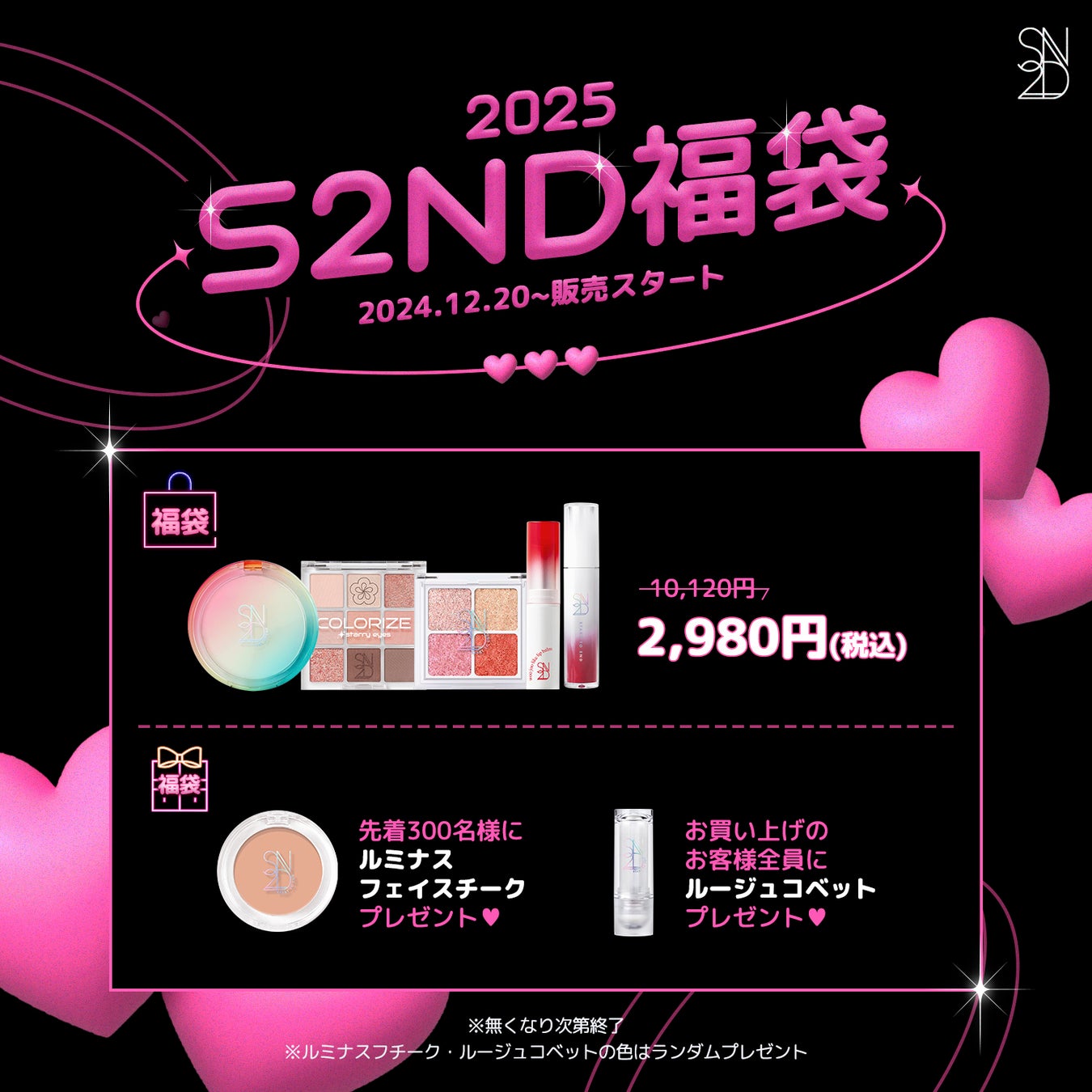 限定福袋はS2ND公式ショップ、Qoo10公式ショップ、およびS2ND楽天公式ショップでも12月20日(金)から販売を開始しますので、商品ラインナップなど詳細は、各ショップの特設ページからご確認ください。