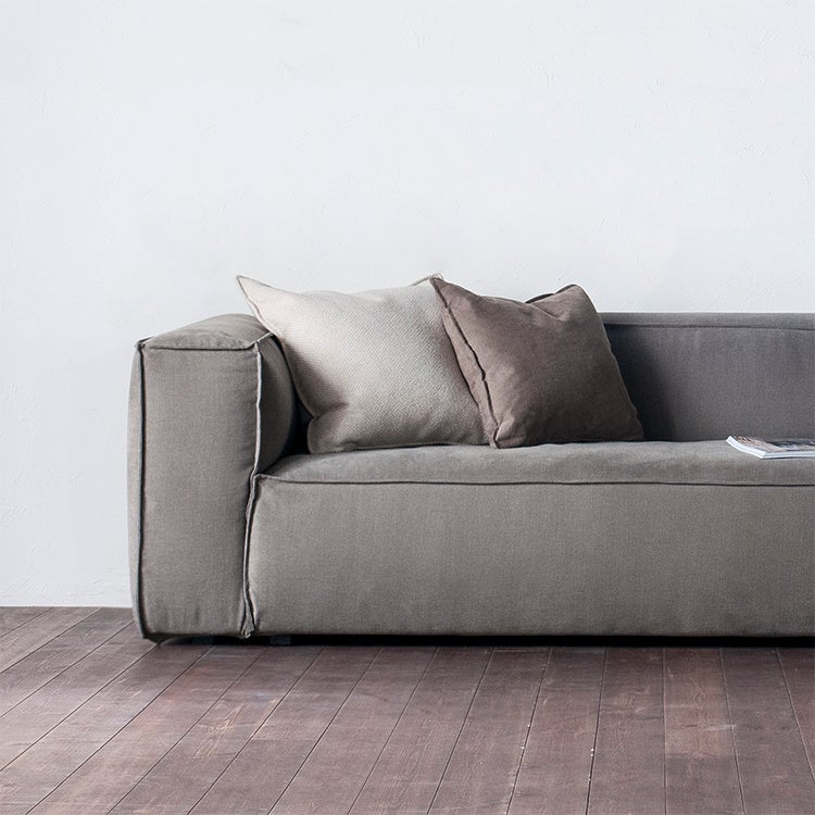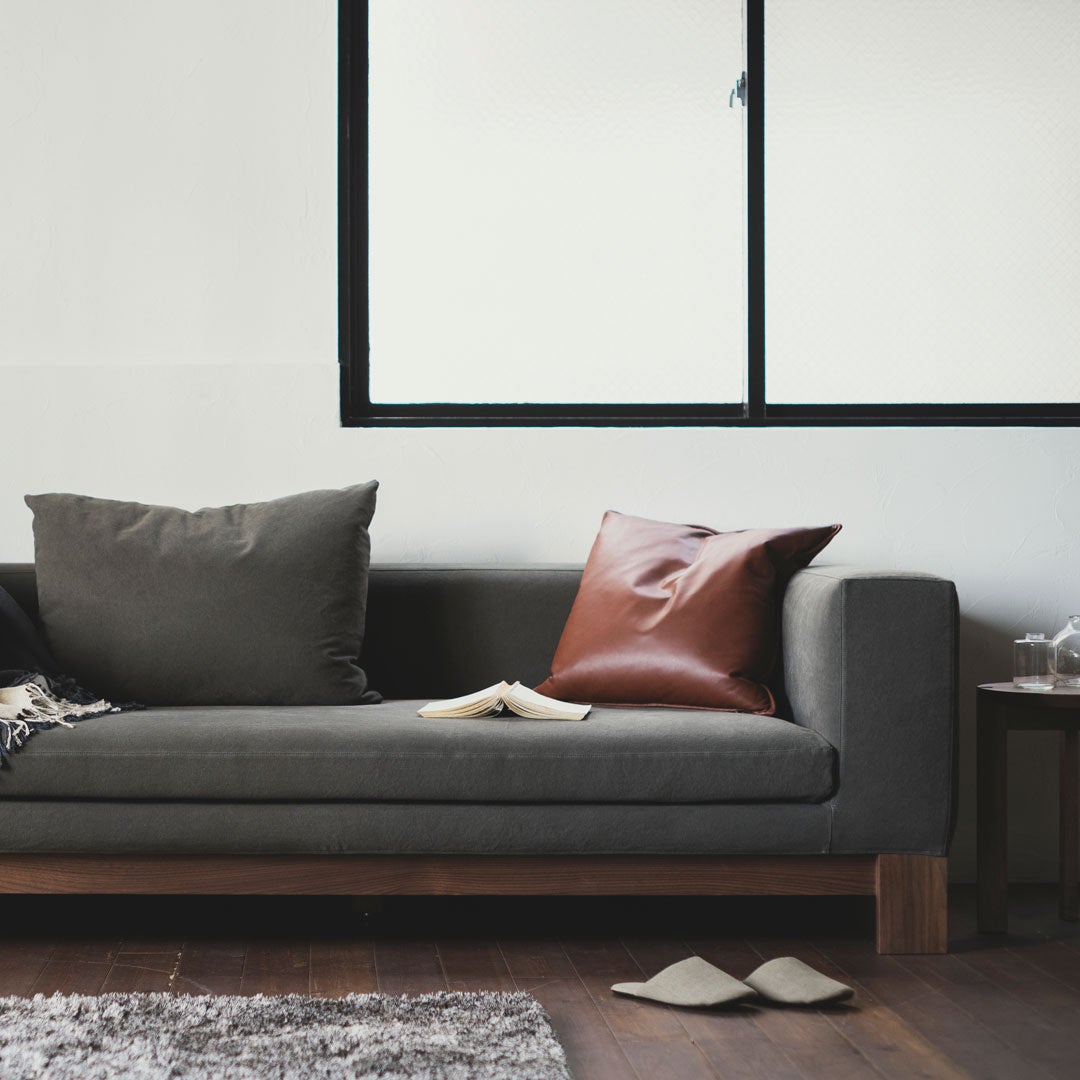 一般的なソファと比べ、座面奥行が深いため、床で過ごしているような感覚で、あぐらをかいたり、寝転んだり、脚を伸ばしたり、様々な体勢でくつろぐことができます。両アームタイプの他、片アームタイプ、アームレスタイプ、カウチタイプなど豊富なタイプバリエーションをラインナップ。各タイプごとに3種類のサイズがあり、さらに細かく指定したい場合はサイズオーダーも可能。空間に最適なレイアウトで配置できます。