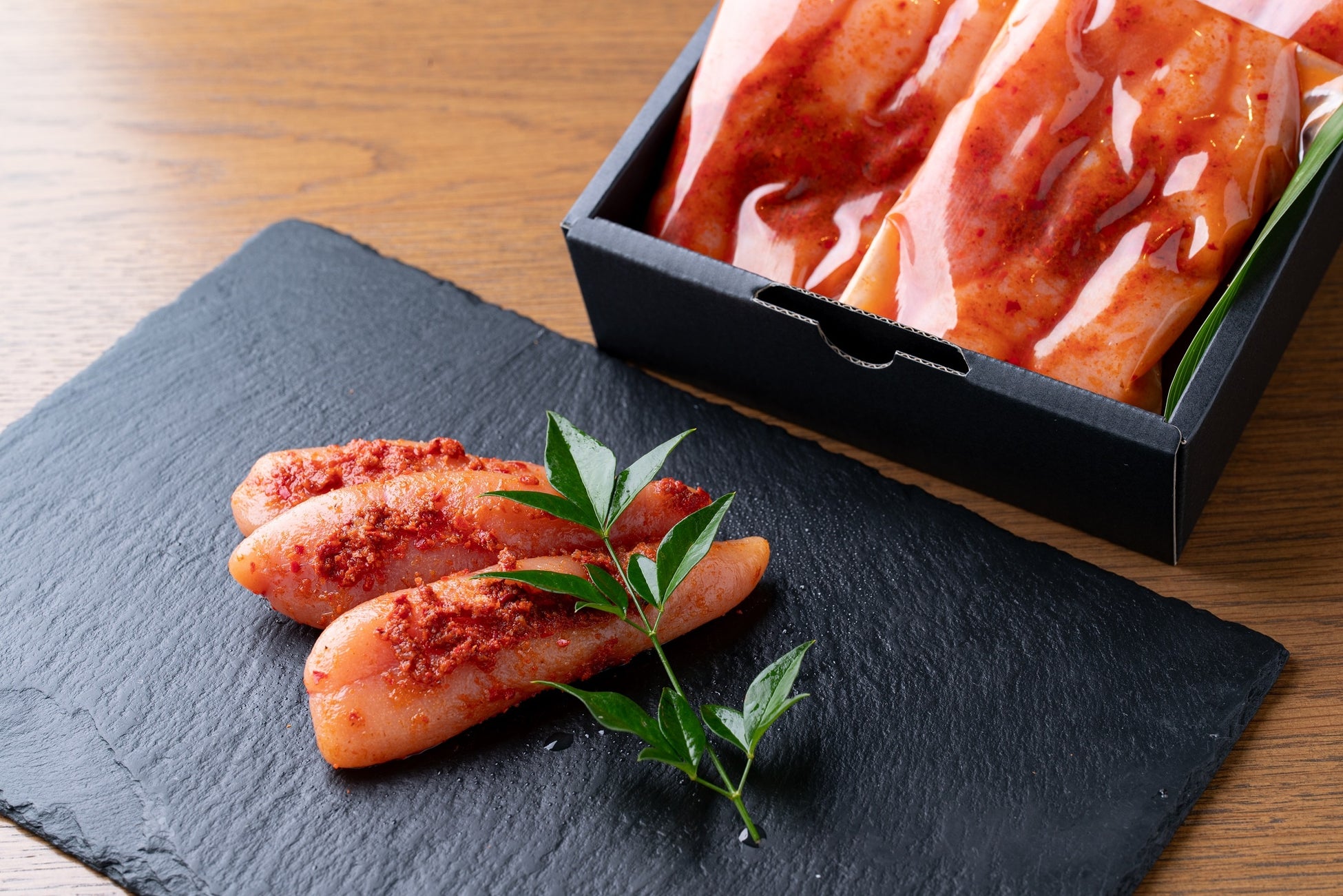 まろやかな旨味と、朝鮮唐辛子による後を引かないマイルドな辛みが特徴の無着色明太子です。昆布と鰹節をベースとした「ふふ」オリジナルレシピの特製調味料に、48時間漬け込み熟成させました。一粒一粒の食感と共に広がる芳醇な味わいをご堪能ください。
