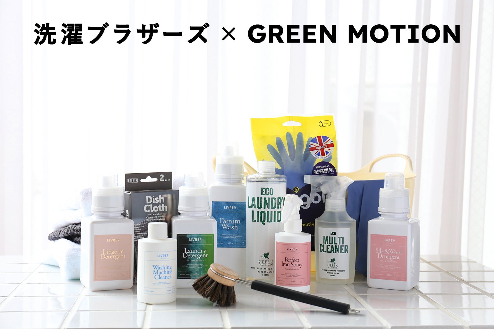 GREEN MOTIONのエコクリーナーを始めとするmarcs STOREのアイテムと、洗濯ブラザーズのブランド「LIVRER」のアイテムをセット販売しております。