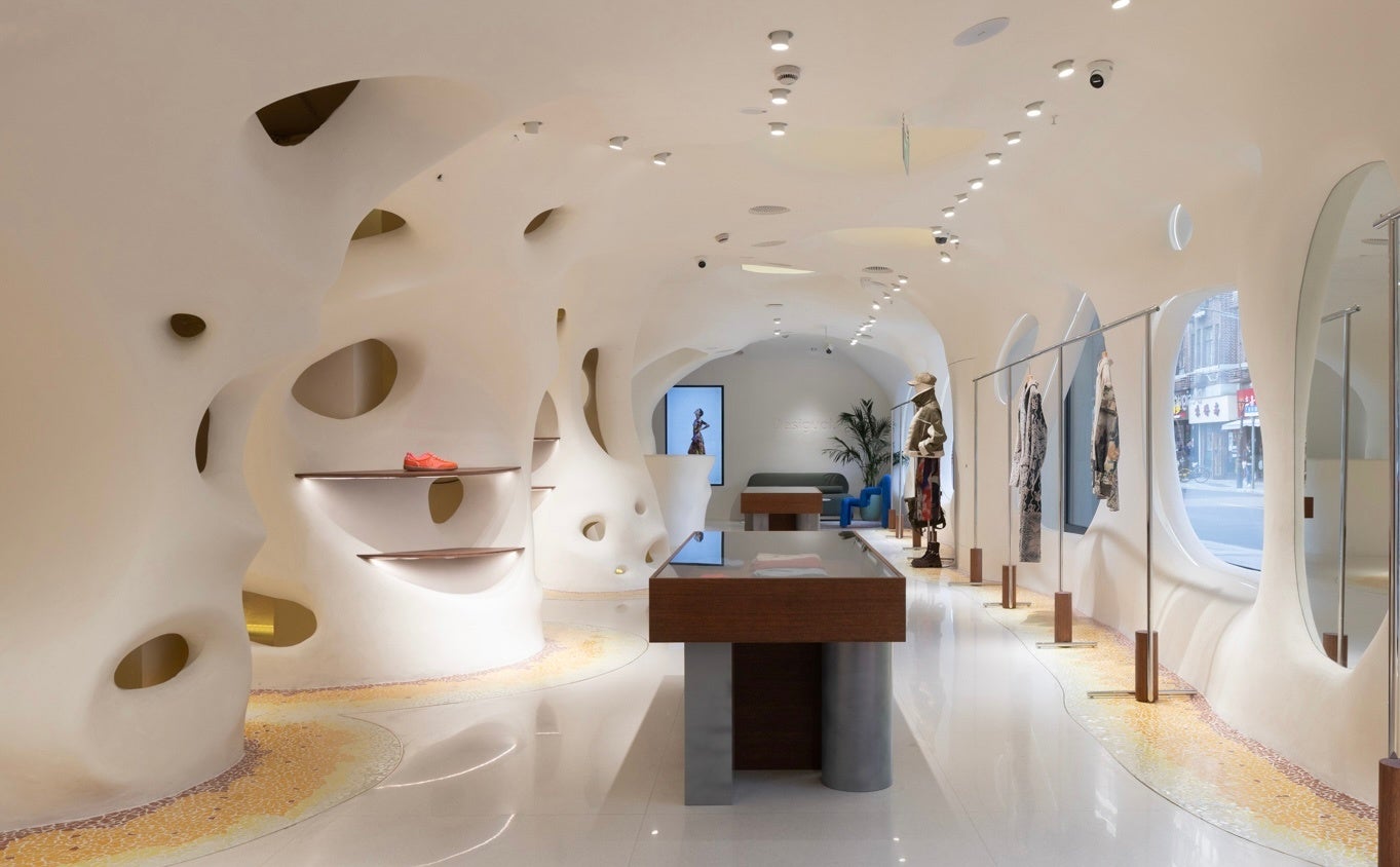 デシグアルはこの中国初の旗艦店の店内を、建築家のガウディが提唱したモダニズムにインスパイアされたデザインにし、中国の顧客様をデシグアルが生まれたバルセロナの精神に近づける、斬新なストアコンセプトを打ち出しました。新しくオープンしたスペースは、自然にインスパイアされた建築と有機的な形を通して、顧客様に生命力があふれる感覚を呼び起こす、特別な体験を提供したいと考えています。