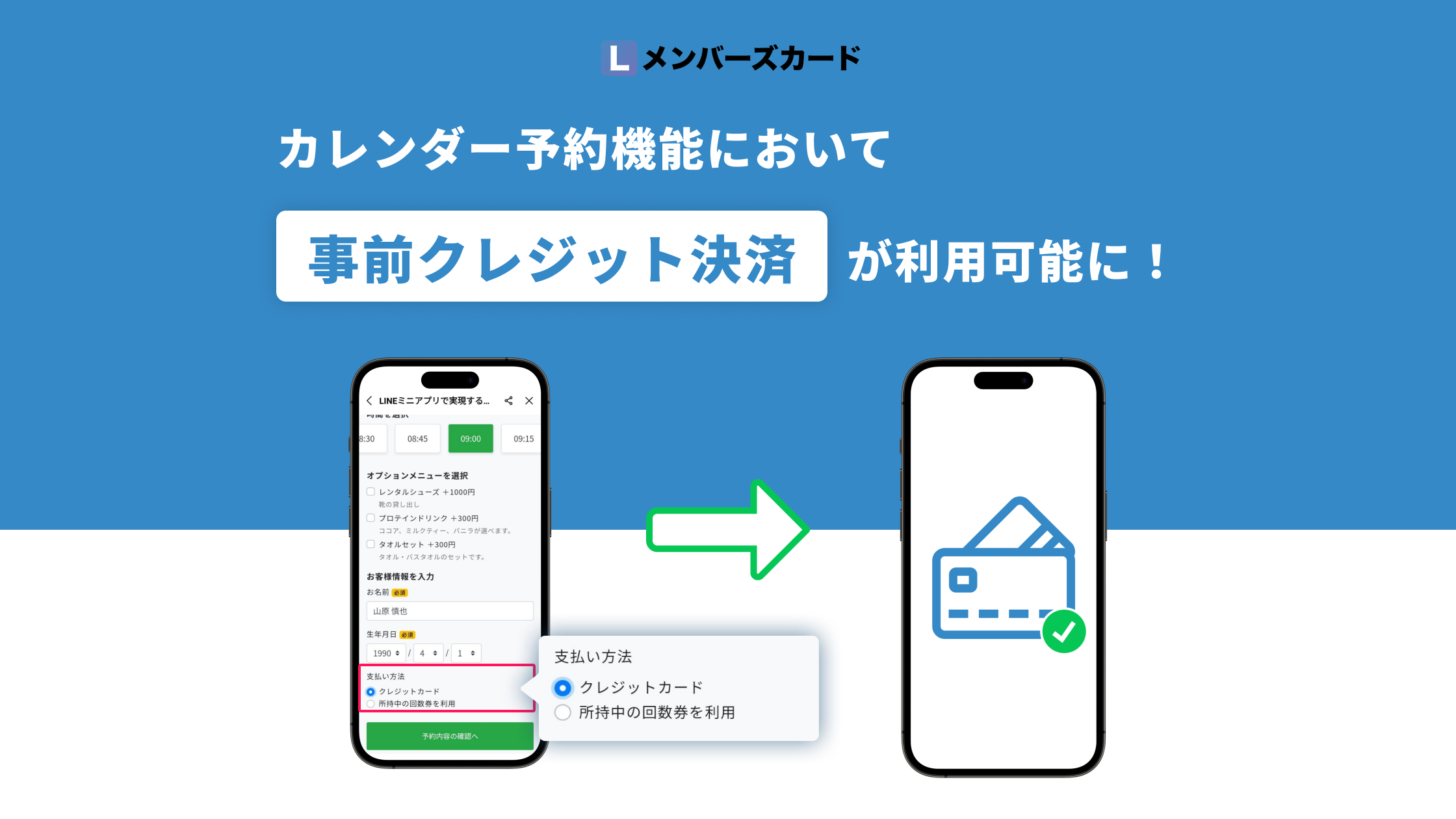 カレンダー予約機能において事前決済が利用可能になりました。 - LINEデジタル会員証「Lメンバーズカード」