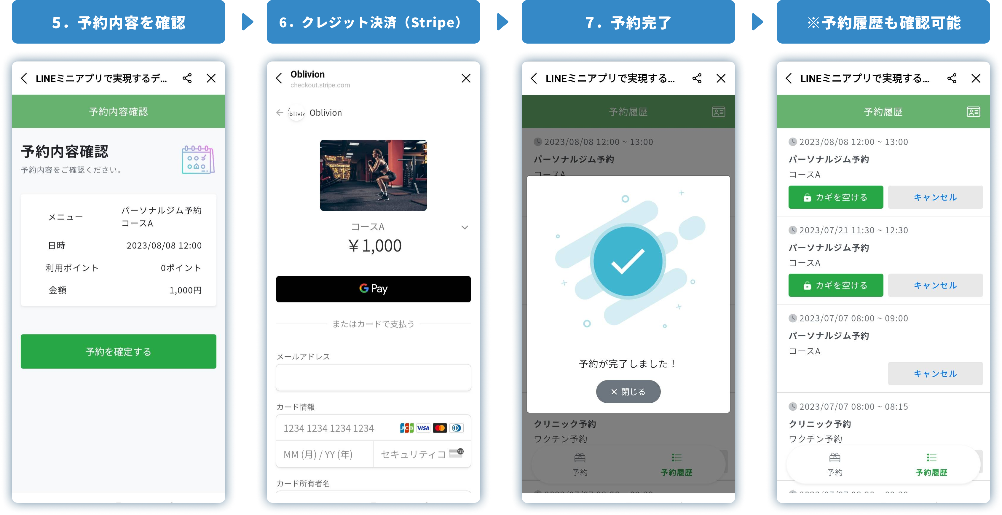LINE上でカレンダー予約から事前決済まで完結!キャンセル防止にもつながります。