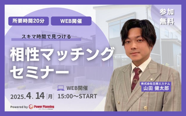 4月14日(月) 15時より、スキマ時間を活用して自分に合った不動産投資の担当者を探すことができる、山田 健太郎講師との「相性マッチングセミナー(無料)」を開催いたします。