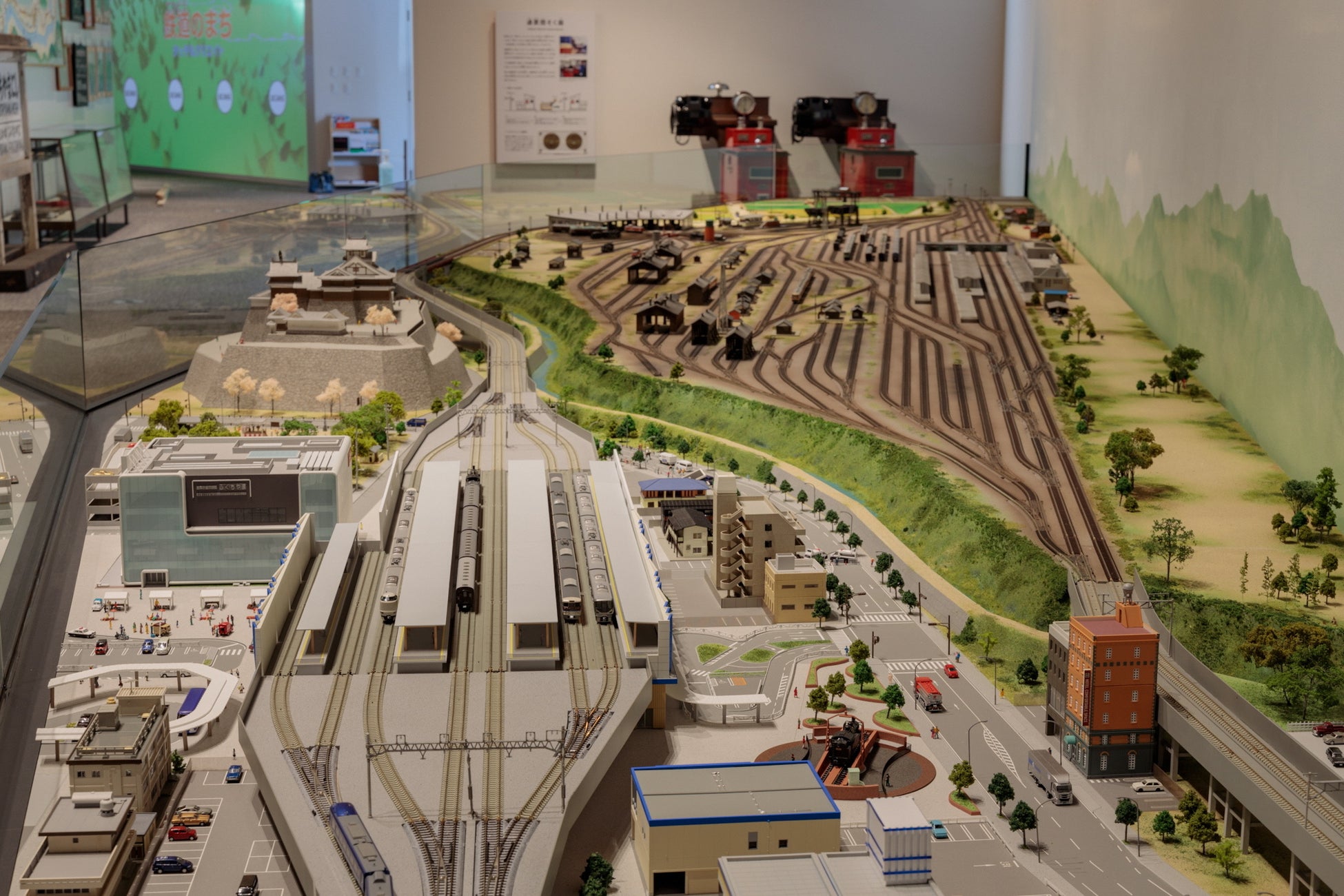 福知山駅の高架前、高架後のジオラマ模型で鉄道のまちの変遷を学べます