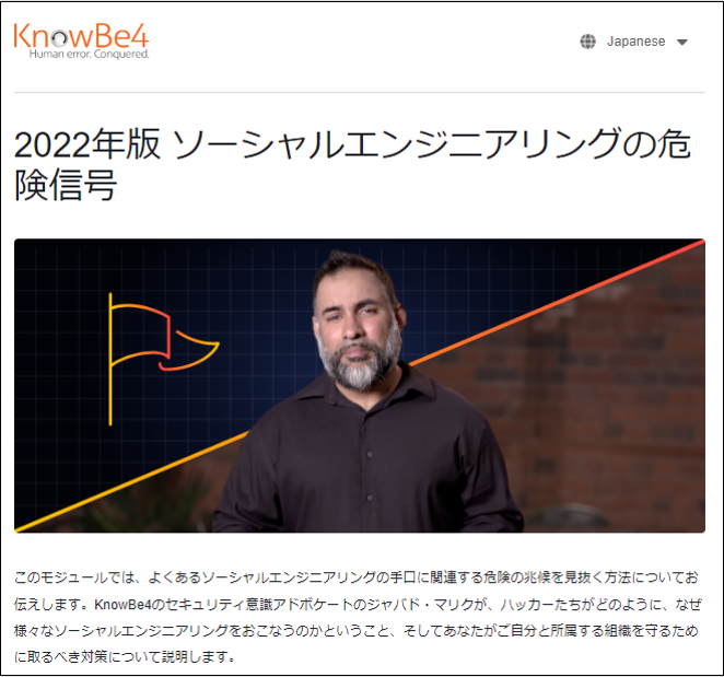 KnowBe4(NASDAQ: KNBE)は、セキュリティ意識向上トレーニングとフィッシングシミュレーション・分析を組み合わせた世界最大の統合型プラットフォームのプロバイダーです。KnowBe4は、IT/データセキュリティ・エキスパートであるStu Sjouwerman(ストゥ・シャワーマン)によって2010 年8 ⽉に米国フロリダ州タンパベイで設立され、セキュリティの「人的要素:ヒューマンエラーの克服」にフォーカスして、ランサムウェア、CEO攻撃/詐欺、ビジネスメール詐欺(BEC)を始めとする巧妙化するソーシャルエンジニアリング手口などの社員ひとり一人のセキュリティに対する認識を高めることで、「人」を狙うセキュリティ脅威から個人、組織、団体を防御することを支援しています。世界で最も著名なサイバーセキュリティ・スペシャリストであるKevin Mitnick(ケビン・ミトニック)がCHO(Chief Hacking Officer)を務めています。同氏のハッカーの視点に立った知見をベースにKnowBe4のトレーニングプログラムは組み立てられています。2022年7月現在、5万2千社を超える企業や団体がKnowBe4を採用して、防御の最終ラインとして「人」による防御壁を構築しています。KnowBe4についてさらに知りたい方は、www.knowbe4.jp をアクセスしてください。